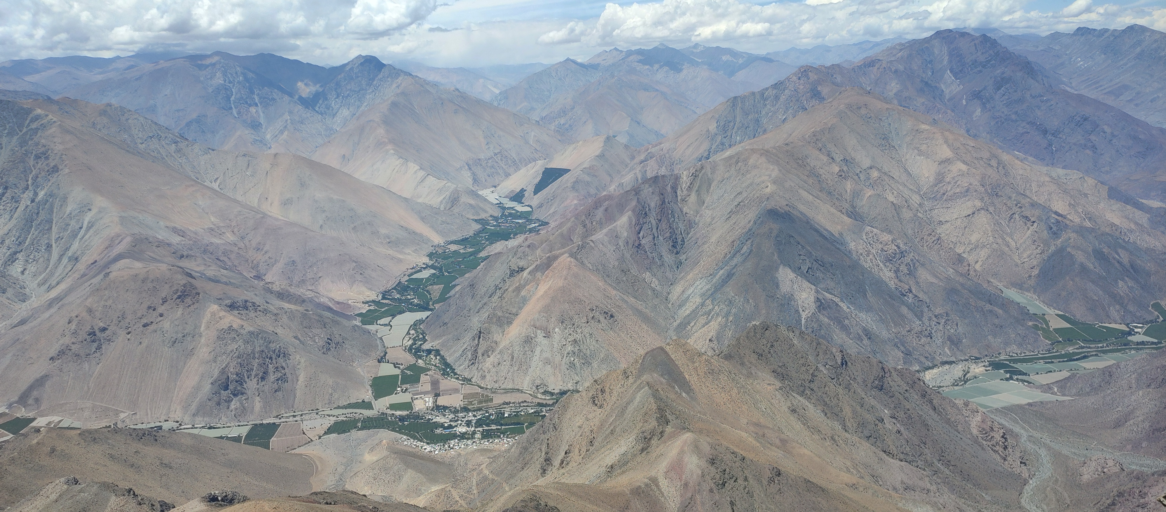 Vista desde la cumbre del Cerro Porongo, con sus casi 3000msnm es un bonito macizo del sector de Rivadavia, Valle de Elqui Segundo ascenso, esta vez hicimos cumbre en el Cerro Negro y Cerro Porongo, dos gigantes del Valle de Elqui, ascenso muy agotador, mucho calor en el descenso, sendero bien marcado salvo un tramo no muy extenso el cual se debe intuir. Se puede hacer en el día pero con buen estado físico, nosotros lo hicimos en dos jornadas.