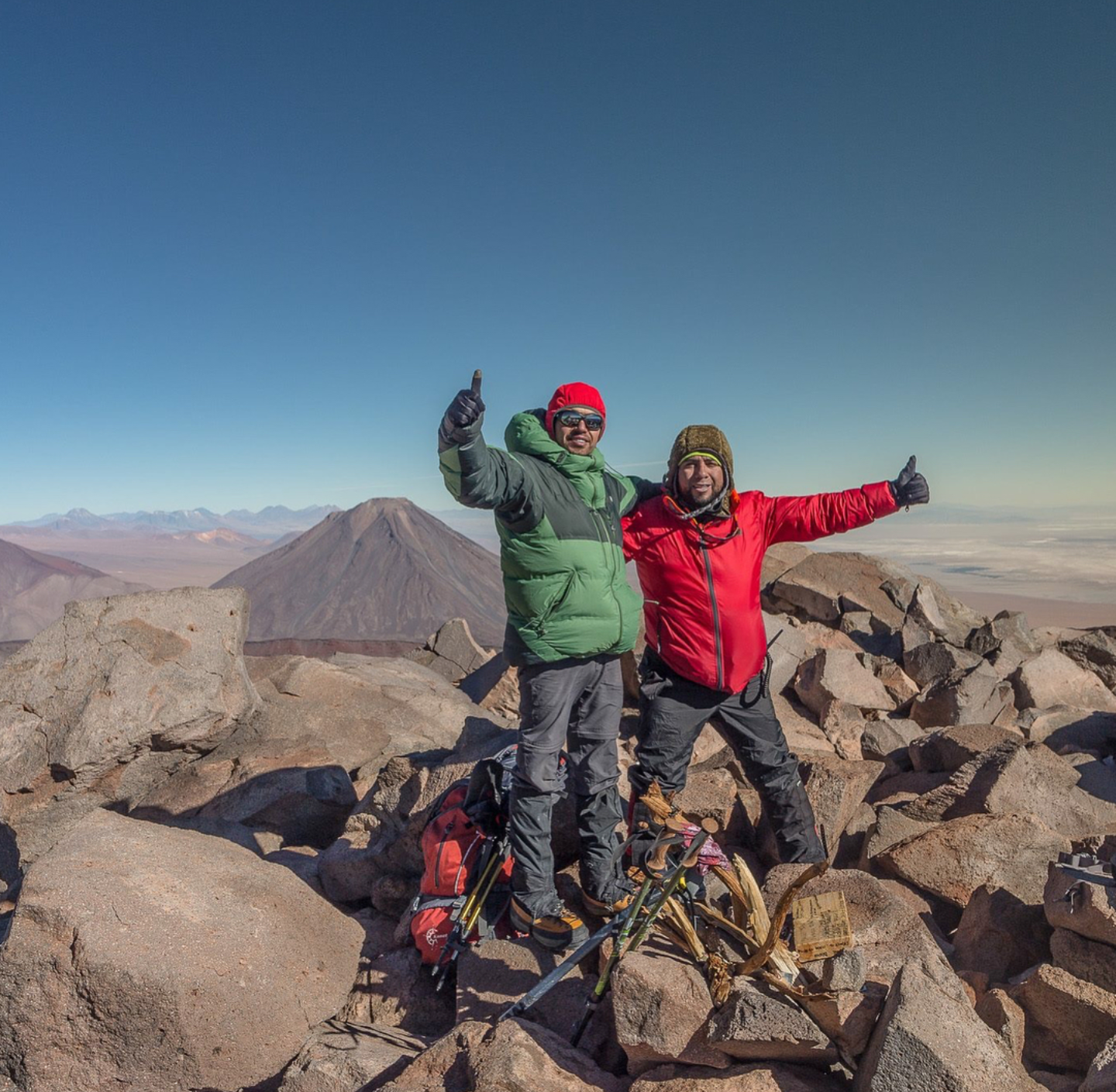 Foto de cumbre con Felipe Carrazana Excelente volcán, excelente cordada de primos, sensación térmica de -12° aprox. Primera salida con ellos, la primera de muchas más. Todo resultó bien y queda a la espera otra experiencia similar.