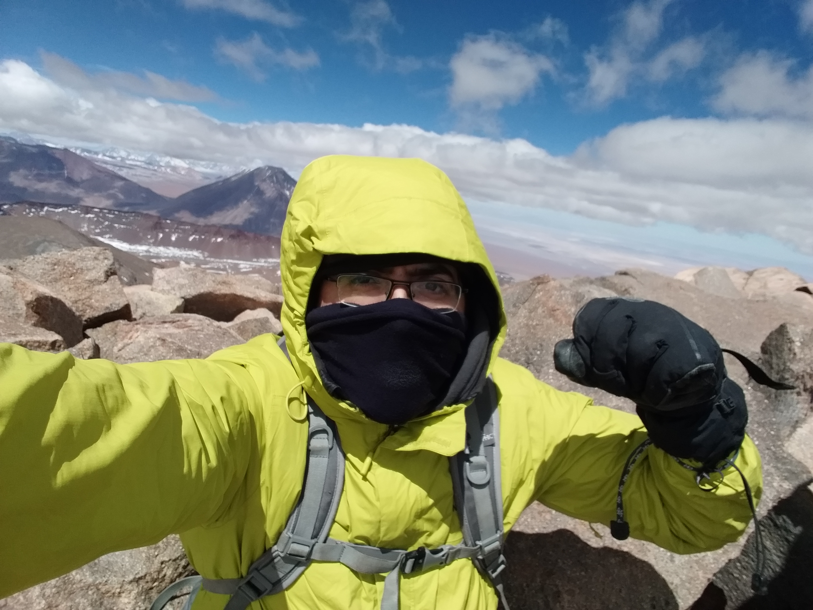 Cerca de las 12:30 hrs. Alcancé la cumbre el 15/09/2019 Día bastante frío y ascenso por neveros y algunas zonas con hielo producto de nevadas del fin de semana anterior.