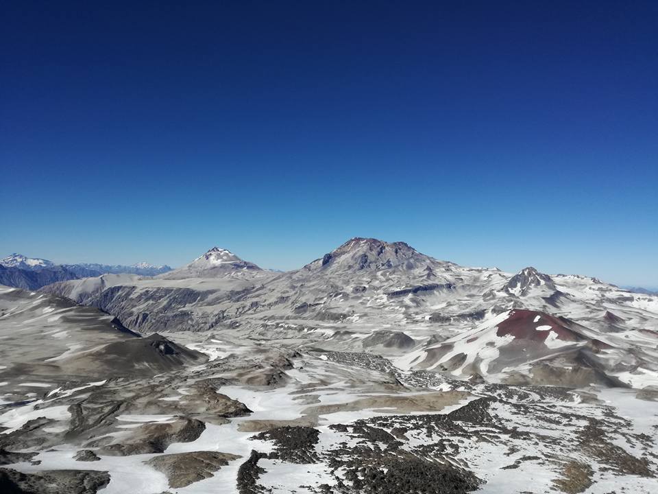 Se ven los volcanes Cerro Azul, Descabezado Grande, Rajaduras y
