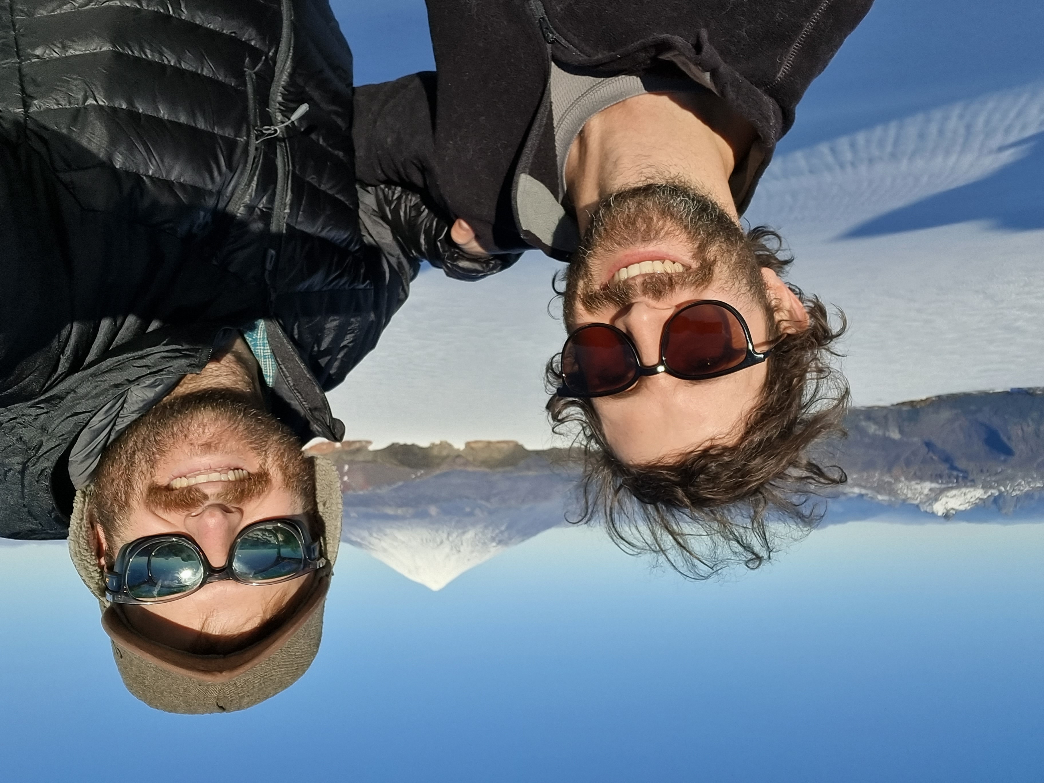 Primera cumbre en randonée juntos. Precioso día. Muy contentos. Primera cumbre de Dante (13 años) en randonée. Ascensión limpia. Muy buenas condiciones del tiempo y de la nieve. Ascenso en randonée, desde poco antes de salir del bosque de lengas (~1500m), hasta la cumbre misma. Fuerte viento pero alta temperatura del aire. Agradable. No tuvimos problemas de acceso. Seguimos todos los pasos indicados en las recomendaciones y no obtuvimos respuesta. No nos encontramos con nadie durante el ascenso y descenso. Desde el auto (inicio del sendero) hasta la cumbre demoramos ~7h. Iniciamos el descenso a las ~18.20hrs. Nos demoramos entre 2 y 3 horas en regresar.