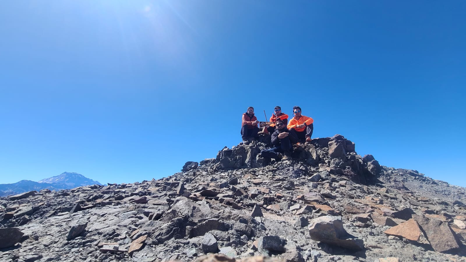 4 pumas en cumbre Un lindo ascenso por el estero lagunillas desde Rio Colorado, muchos vestigios arqueológicos en el sector, muchas vegas y humedales con presencia de guanacos. El descenso lo realizamos directamente por la cara sureste hacia rio colorado, es mas corto y rapido.