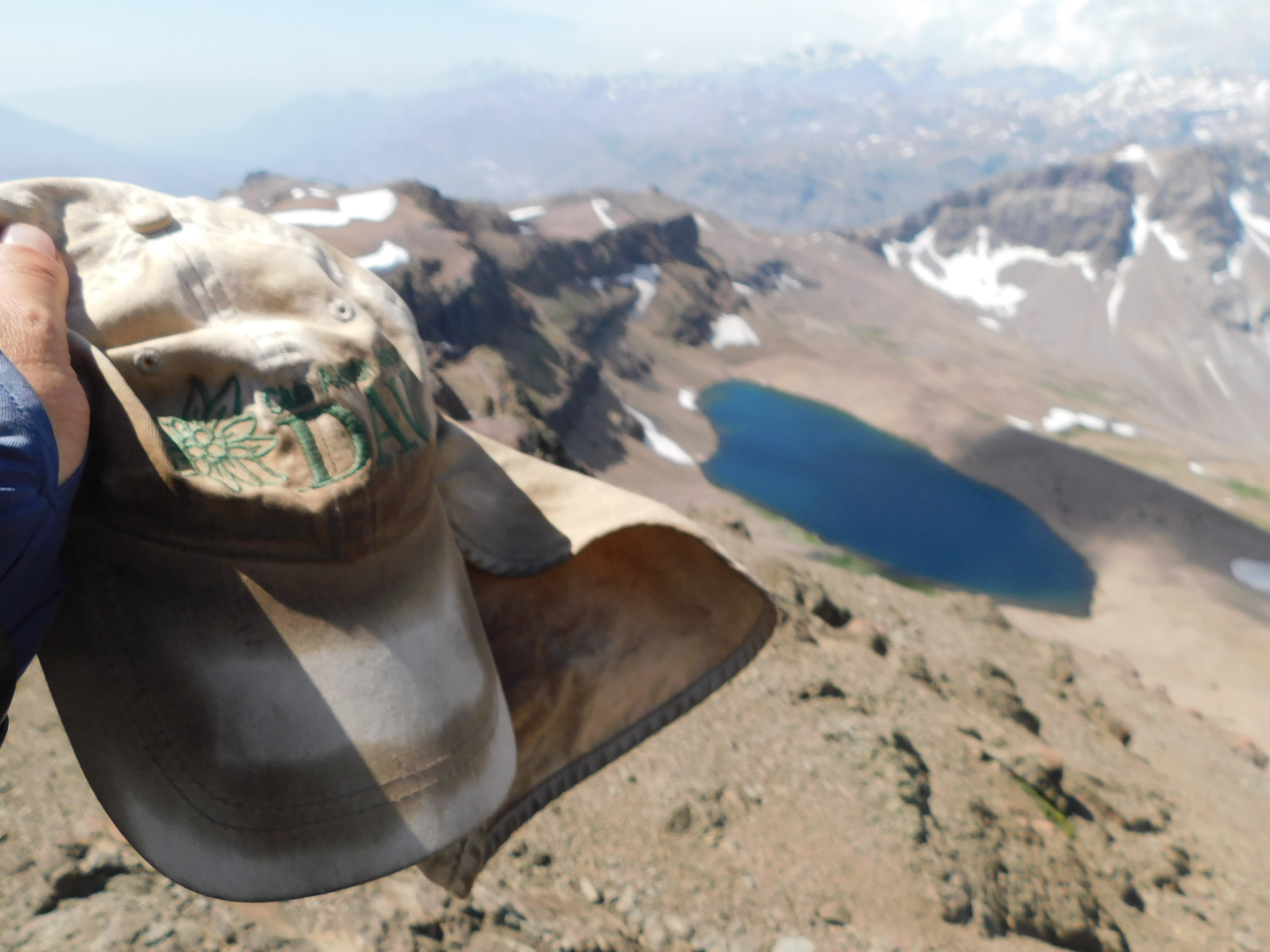 Llegamos a la laguna Piuquenes con intenciones de subir el cerro El Peñón, así que subí solo al Huemulino para ver la ruta. En el camino me encontré con un planchón de nieve dura que me costó cruzar sin crampones, así que a la vuelta preería rodear el nevero y bajar por acarreos.