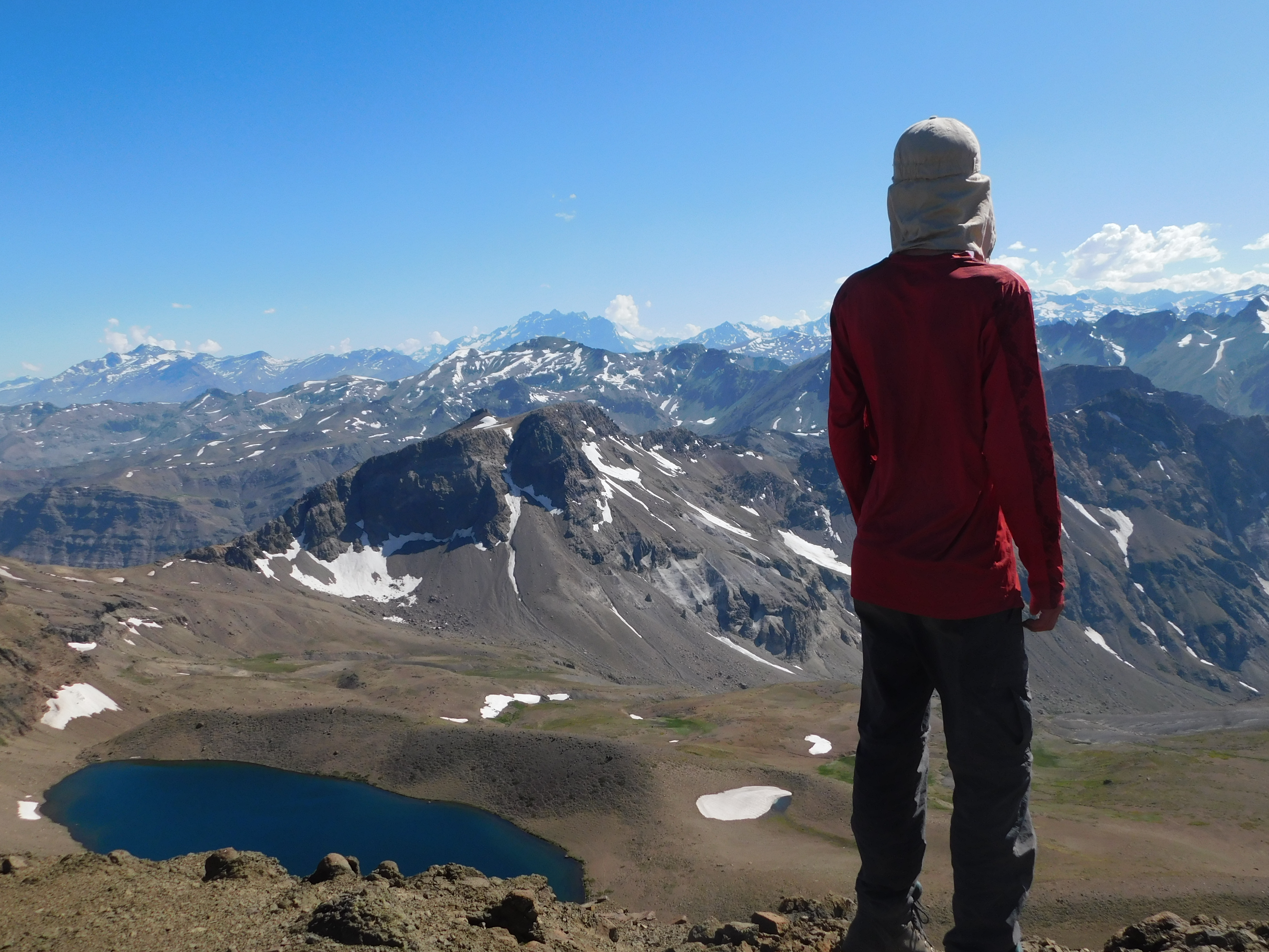 Partimos con intenciones de subir el cerro el Peñón, pero como en la ruta había un nevero con nieve dura, preferimos subir primero el Huemulino directamente desde la laguna para después bajar desde ahí al portezuelo y así seguir a esta otra cumbre evitando el nevero. Subimos por un acarreo que nos llevó a un par de canaletas por las que tuvimos que gatear un poco para salir derecho a la cumbre.