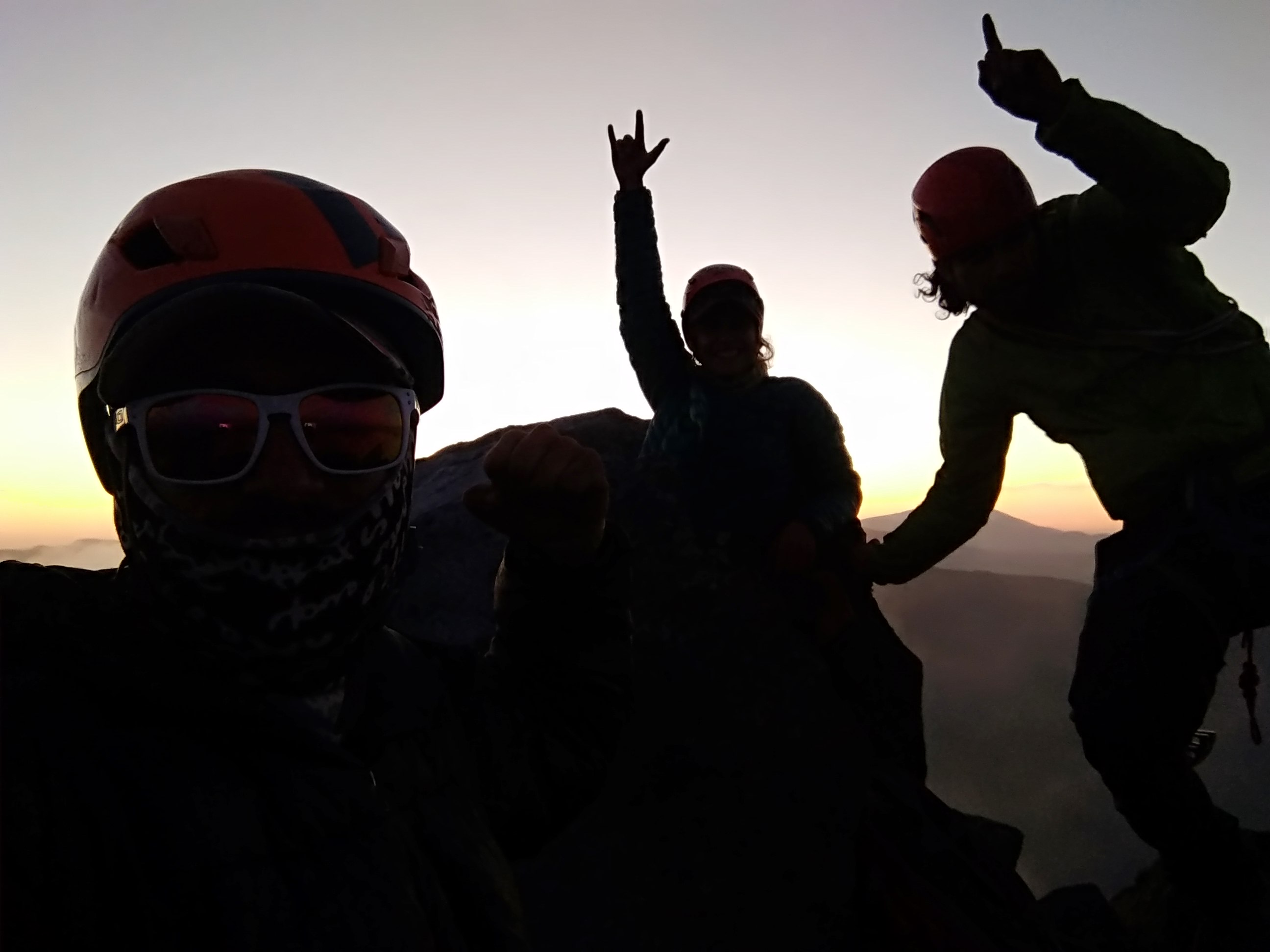 Caminamos desde el auto hasta una explanada donde montamos campamento. Al otro día salimos a escalar a la torre principal de Las Peinetas por la ruta Happy Birthday. 5 largos y un trepe hasta la cumbre. Desde allí unos 7 rapeles hasta pie de vía. Nos tomo todo el día y vivaqueamos con lo puesto en la base de la roca, en una cueva que nos protegía del viento. Esto para no pasar por el canalón con pasitos expuestos de noche.