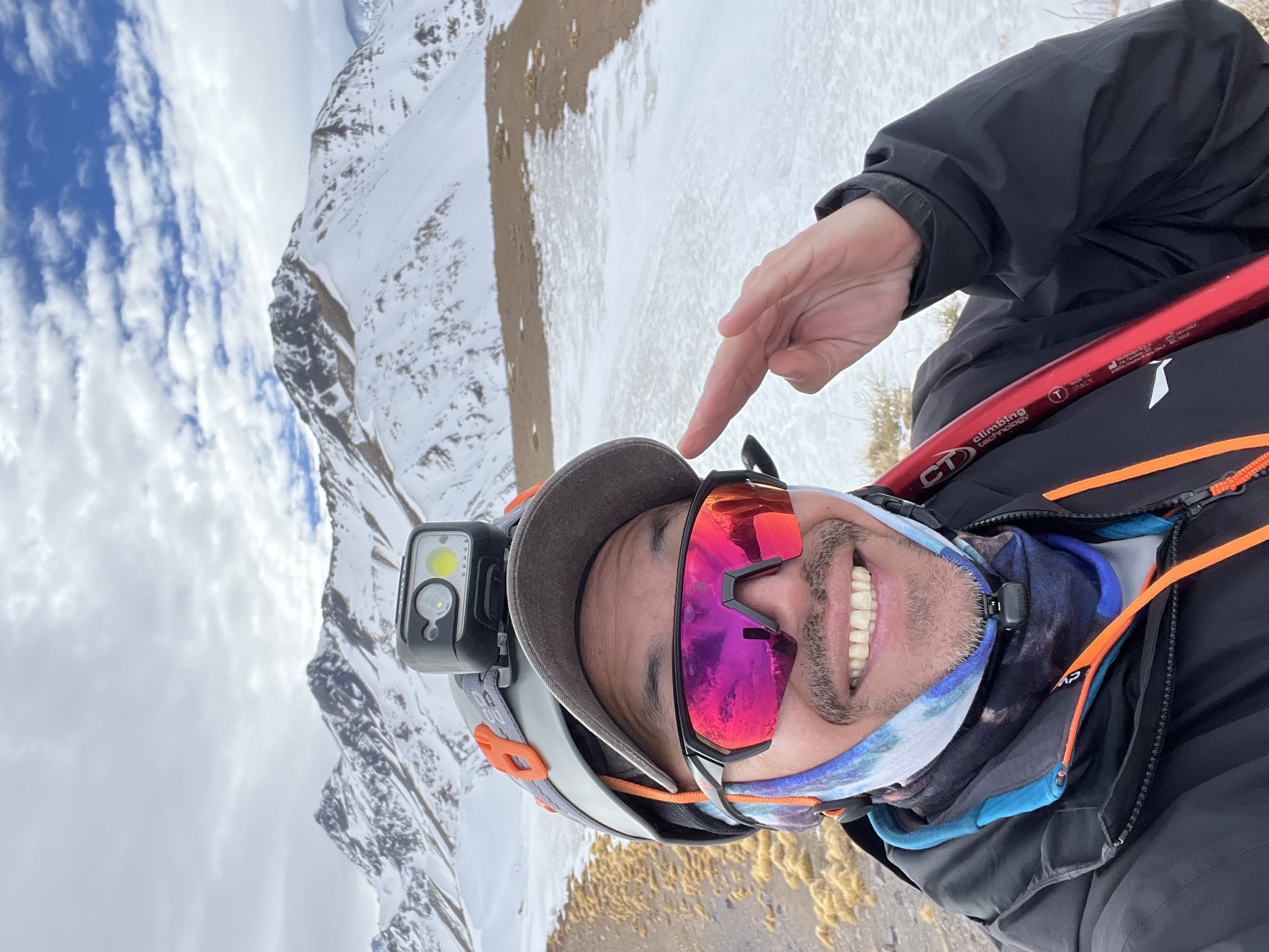 Cordada Andrés González, Patty Inostroza, Darwin Arriaza y Aner Pinto Villa. Desde la cumbre podrás contemplar una maravillosa vista al valle del Yeso y a las montañas aledañas, ruta con mucha nieve, se recomienda uso de piolet y crampones. Cordada Andrés González, Patty Inostroza, Darwin Arriaza y Aner Pinto Villa.