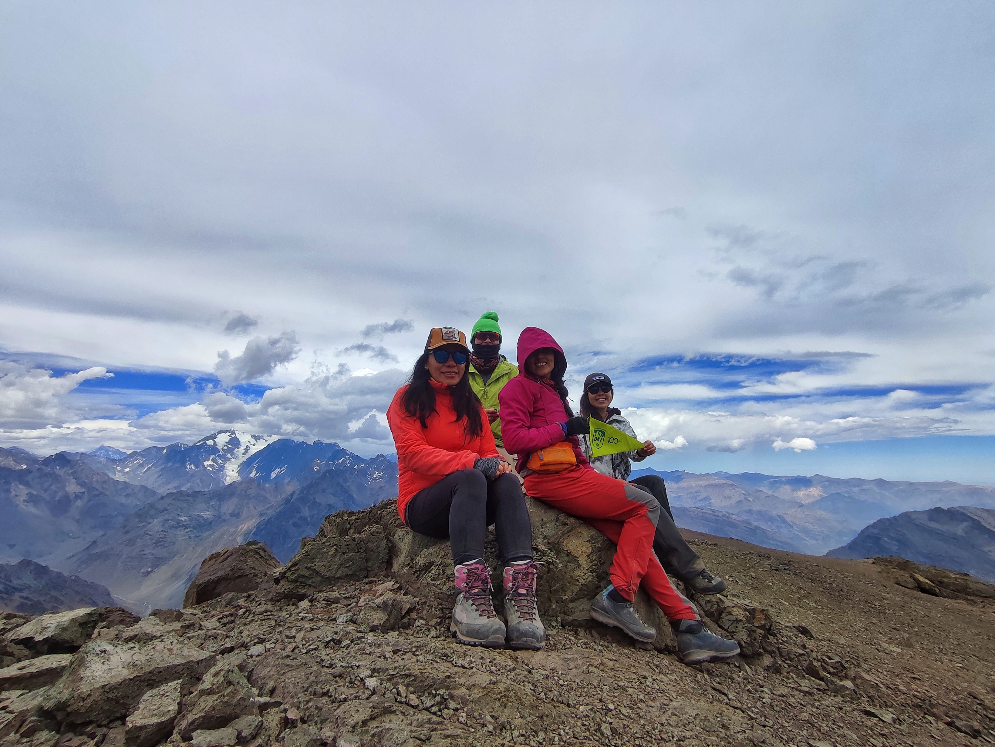 el ascenso fue en solitario, en una jornada. salí a las 4:30am desde el hotel, alcanzando la cumbre a las 12:00. La ruta esta muy poco marcada, especialmente en el ascenso por la pendiente fuerte, y hubo manchones de nieve que cubrían la poca huella que había, de hecho me pasé de largo en un sector. Me tocó un buen día, en la cumbre casi no había viento, lo que me permitió volar el drone y tuve señal en el celular!!!. el descenso fueron 5 horas hasta portillo.
