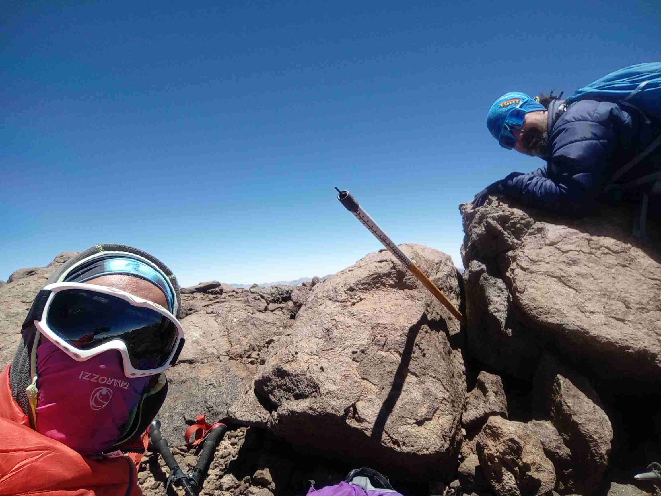 Cumbre Olivares Central ( Majaditas ) 6269 msnm. Junto al andinista Jorge Nome Cumbre Olivares Central ( Majaditas ) 6269 msnm. Junto al andinista Jorge Nome. Armamos 2 Campamentos de altura , y el día de cumbre se camina por la ruta normal por el periglaciar hasta llegar a las cercanías de la cumbre.