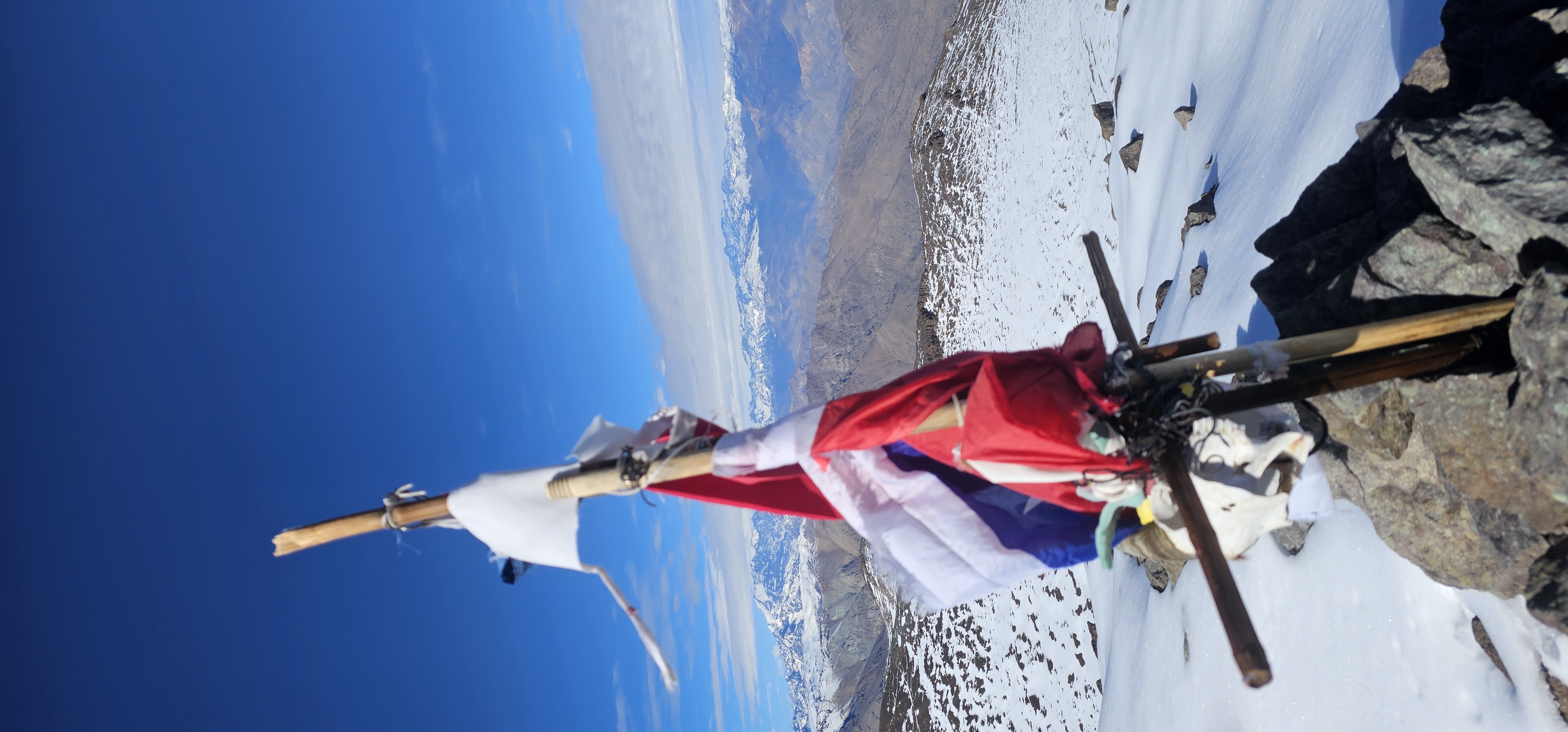 Reposición de las banderas chilenas de la cumbre, se había roto el coligue, se arregla la apacheta y refuerza la base,se incorpora la bandera mapuche. Que viva el 38%???? Ruta espectacular, nos toco un gran día, partimos más arriba de los refugios del arpa, nos topamos con una tropilla de 4 guanacos que nos marcaron la ruta hasta el filo, el Aconcagua se ve monstruoso.