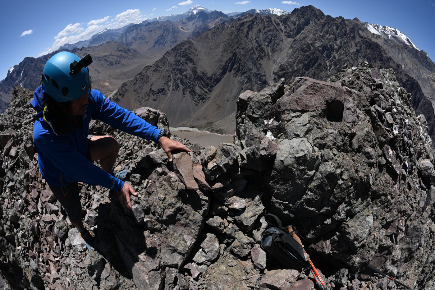 Ascenso Club Andino Peñimawida - desde el glaciar del juncal al fondo del cajón alcanzamos uno de los portezuelos del cerro por ruta poco recomendable, alcanzamos una primera y notable aguja (4015 m indicó el GPS para la mayor de un conjunto de tres agujas en ese punto); descendimos hacia otro portezuelo al poniente en el cerro y luego subimos hacia la base de la cumbre cuya fotografía está publicada aquí en el Andeshandbook y se observa como la mayor, y la subimos por su cara sur, vertiginosa y muy expuesta; arriba no encontramos testimonio ni movimiento de piedras que dieran cuenta de algún ascenso previo, pero por tantos años pudo consumirse algún testimonio de los primeros ascensionistas (4052 m indicó el GPS), más al poniente existen otras 2 cumbres de altura similar; al descender de la cumbre pasamos a una punta menor que está al norte de la mayor buscando algún testimonio y nos encontramos con uno de Alvaro Vivanco 2014 que señala ese punto como Cumbre "Falso Agujas de Nacimiento"; decidimos bajar por un acarreo hacia el cajón Monos de Agua por los potenciales peligros de la ruta del ascenso …