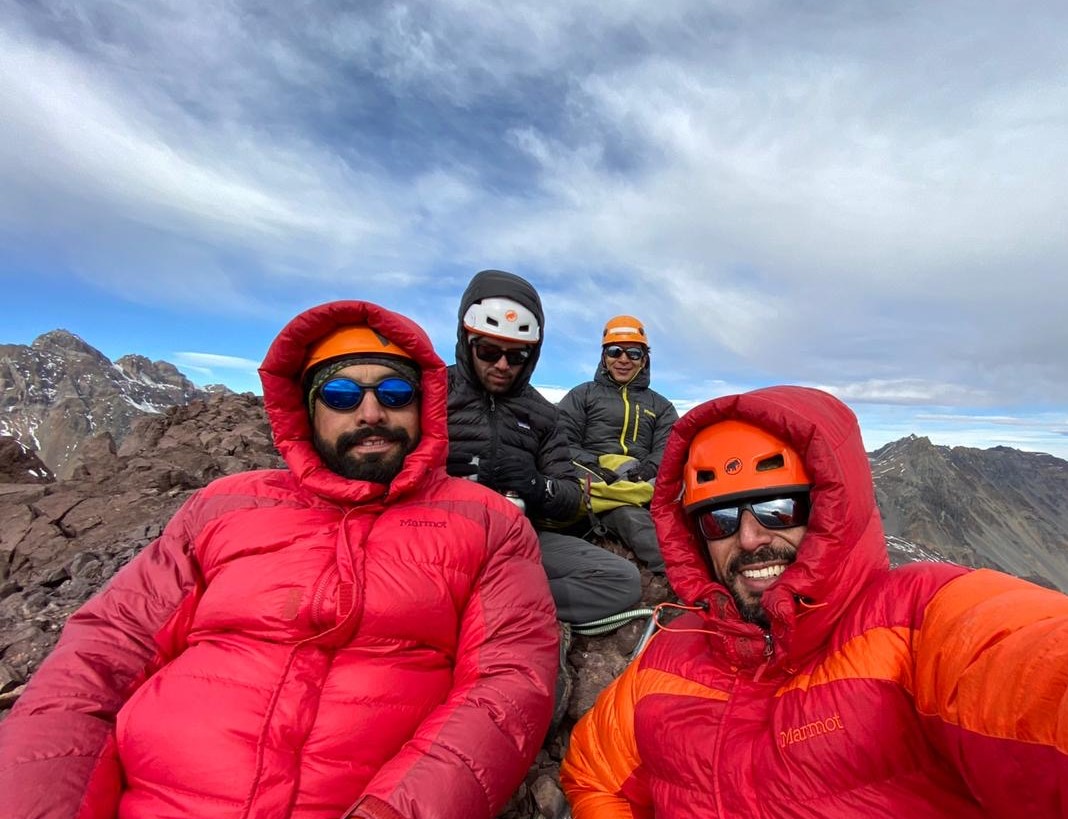 Bonito ascenso desde el campamento base (2.800m app). Bastante frìo en la cumbre y espectacular vista al Cordòn Espinoza. Encontramos testimonio primera ascensiòn por los Perros Alpinos