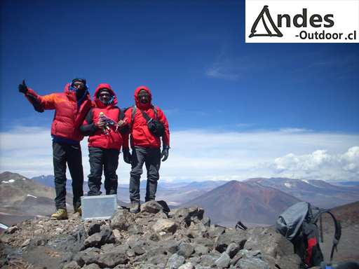 Cerro sin huella visible, comenzamos en el CB Laguna en vehículo y comenzamos caminata por el lomo Oeste hasta llegar a una semiplanicie a los 5.400m, donde descansamos. Seguimos hasta tomando el lomo de más al norte siguiendo rumbo oeste hasta los 6.000m donde se realiza un traverse muy visible hacia la cumbre. Días antes me encontré con expedicionarios del DAV a los que invité como aclimatación en su proceso. En cumbre Luis pino, Patricio Conejeros, David Ferreira (Andes-Outdoor.cl)