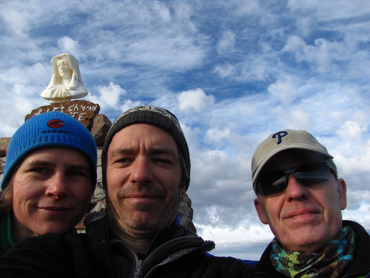 Subimos el sábado y como el pronóstico del tiempo para el domingo no estaba bueno, pasamos a la cumbre antes de llegar al refugio Casa de Piedra. La cumbre es una gran planicie, en medio de la cual los arrieros pusieron una imagen de la virgen. El ascenso desde Catemu es largo, pero vale la pena. Da para quedarse unos días más y recorrer el filo hacia el Chache y hacia el Caquicito. Es increíble que haya un refugio tan antiguo a esta altura.