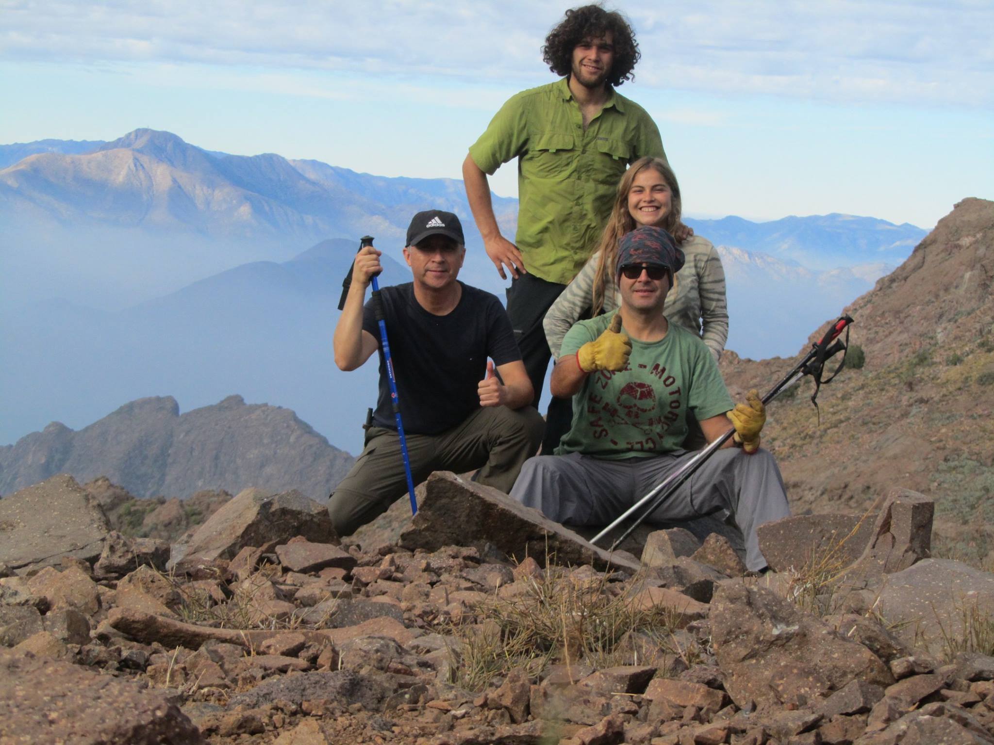 Felices después del esfuerzo. Muy entretenido, en dos jornadas, buen tiempo, harto calor, pero harta sombra. Agua sólo bien arriba, cerca de casa de piedra, refugio a 20 min de la cumbre.