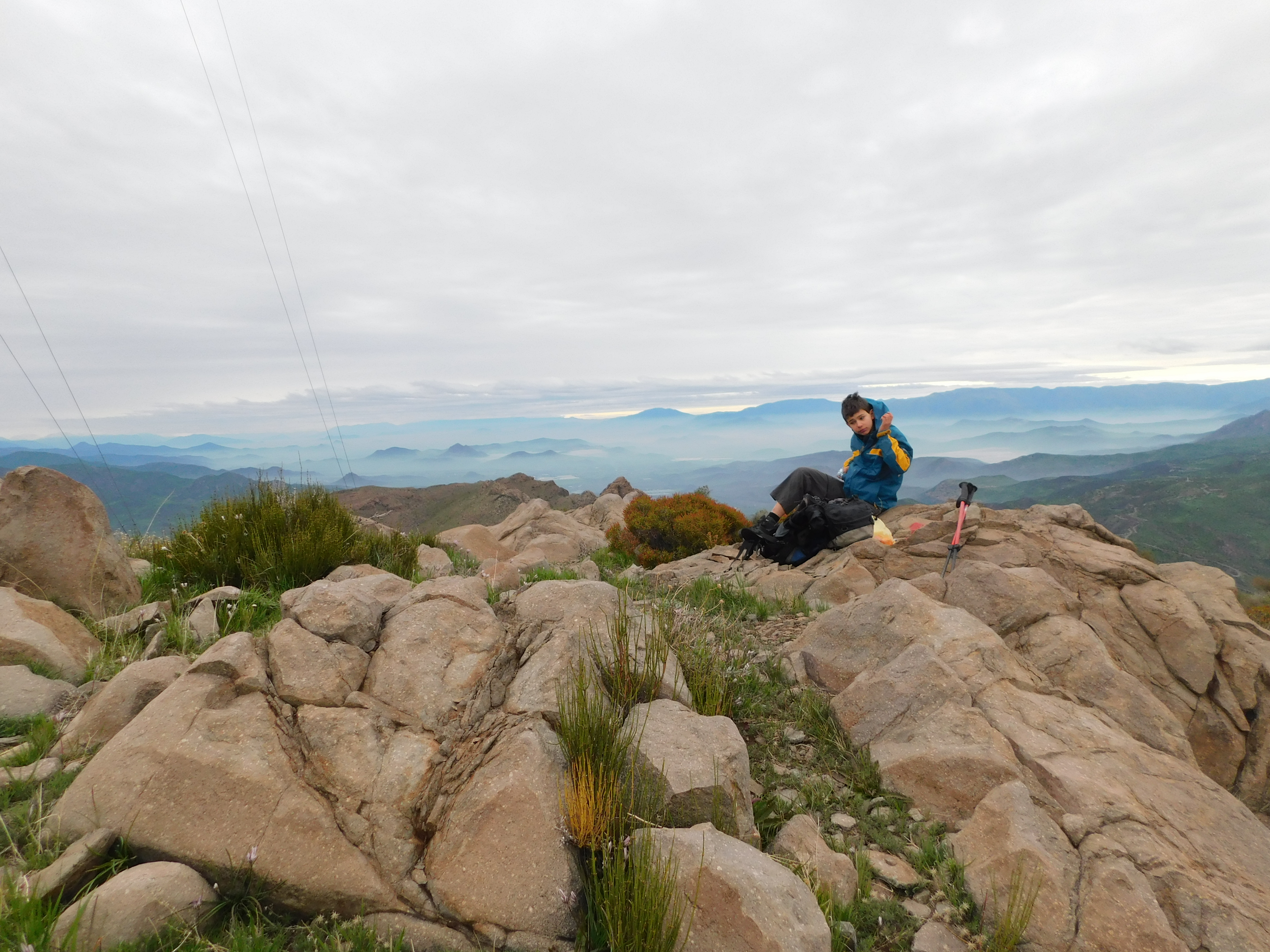 Entre medio de los días de lluvia buscamos una alternativa por el día y fuimos a intentar este cerro por la cara Oeste desde la carretera. Encontramos un lugar donde estacionar y un acceso por el que subimos directo a la cumbre. Nos tomó un poco menos de 3h llegar arriba. Entre las nubes y las antenas de la cumbre no pudimos disfrutar mucho de las vistas, pero la vegetación estaba muy verde y había unos asientos de la suegra enormes en la ruta.
