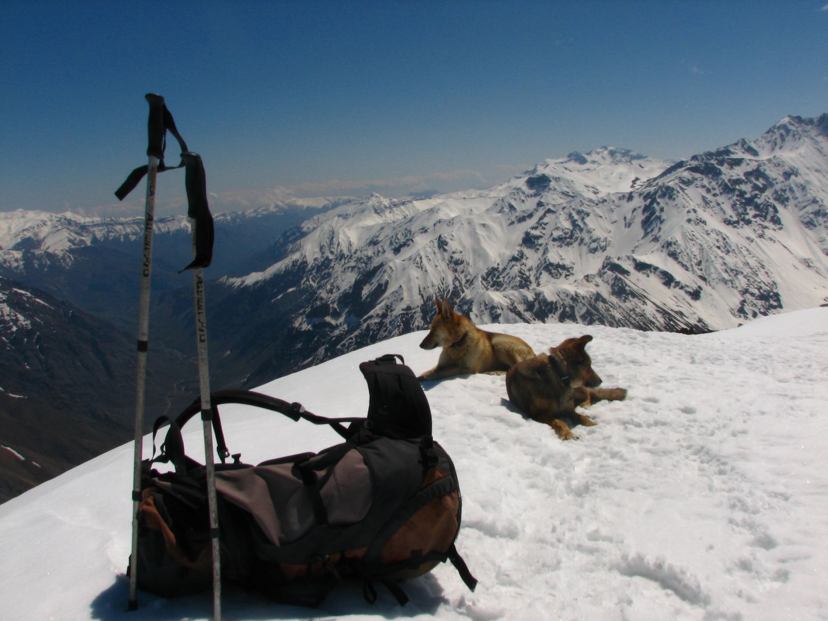 Subí desde la quebrada de Valdés. Me acompañaron 2 perros hasta la cumbre. Caían piedras durante la subida.
