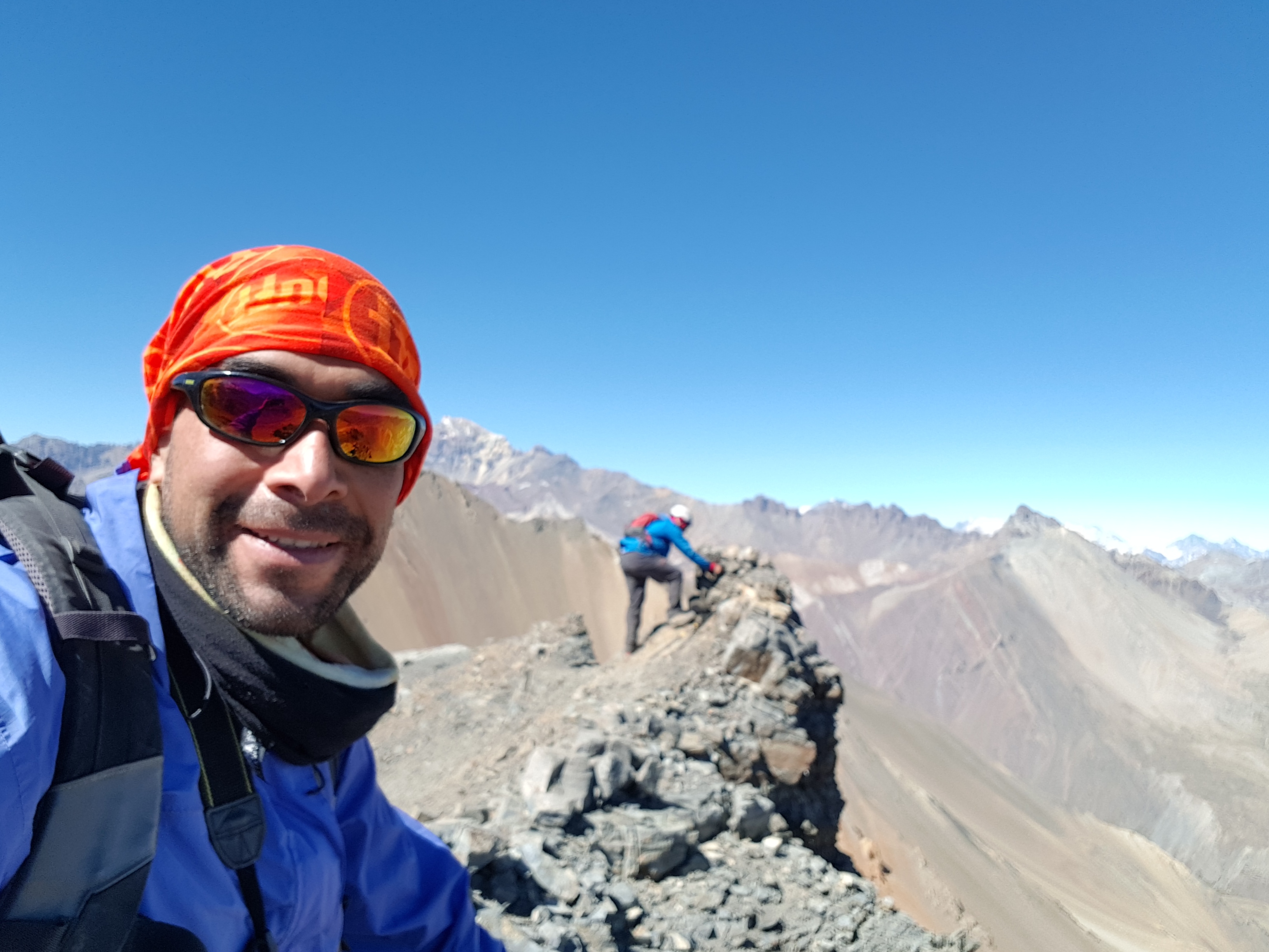 Hermosa vista entrega a cumbre, la cual está compuesta por roca de pésima calidad. En pleno verano el acarreo es protagonista en el ascenso.