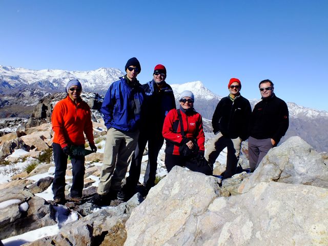 En un día pleno de sol, casi sin viento, los 6 iniciamos una tranquila caminata a el Enladrillado, pasando luego por la Laguna del Alto, para culminar en la cumbre del Peine. Nos topamos con un gateo un poco expuesto, pero fácil de manejar.