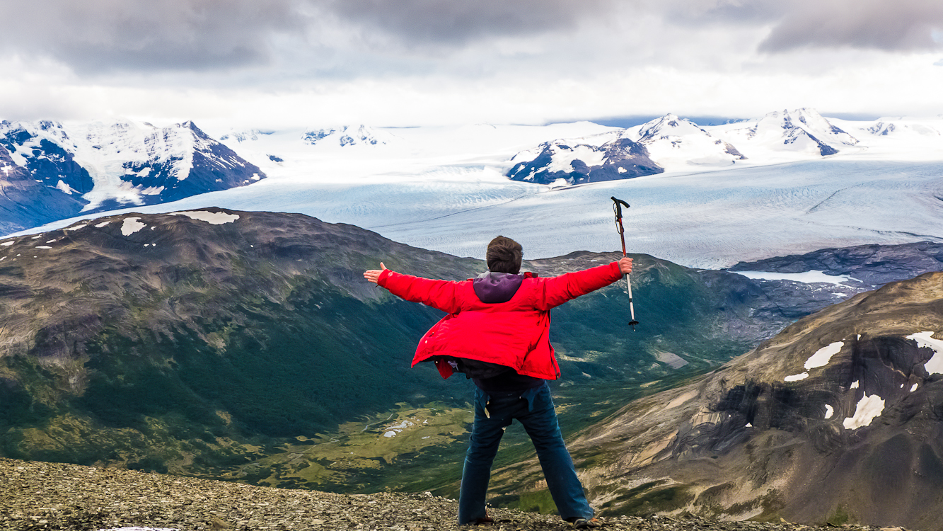 Glaciar tyndall y campos de hielo sur tomadas desde el descenso de la cumbre principal . Luego de haber realizado una visita previa al lugar ( hasta la laguna don walter) planifique el primer ascenso a este monte el cual seria el mas complicado, pero al ascenderlo me di cuenta que era posible bordear el cerro sin tener que pasar por el glaciar y asi despues de 5 horas logro la anhelada cumbre .