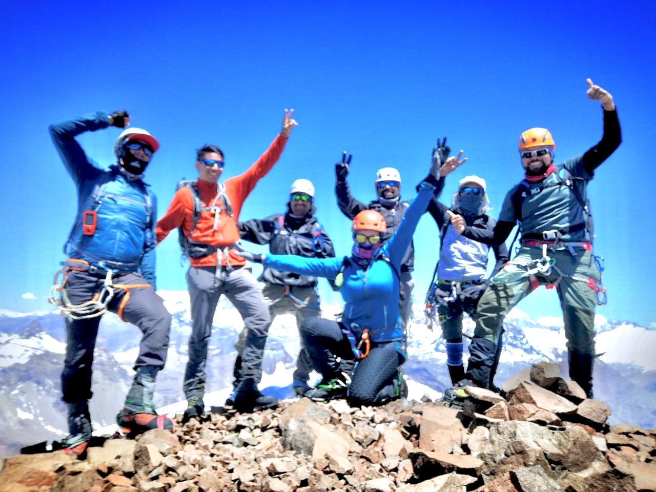 Luego de llegar a la Laguna piukenes campamento base sobre la quebrada de la gloria, y ubicar un punto de abastecimiento al momento de ir a reconocer el primer tramo de la ruta hasta el canalón que nos lleva al portesuelo del baúl, ascendemos el cerro el Tridente 3,663msnm sin registros de Ascención desde 1974 ubicado al norte del cerro alto de la buena vista. Luego de descender, y dirigirnos y bordearlo por el E para luego sortear la progresión en el glaciar medina y su bella Laguna congelada llegamos a la parte de escalda por su cara SO donde luego de sortear 25metros aproximados de trepe logramos llegar cordada completa ala cumbre del cerro alto de la