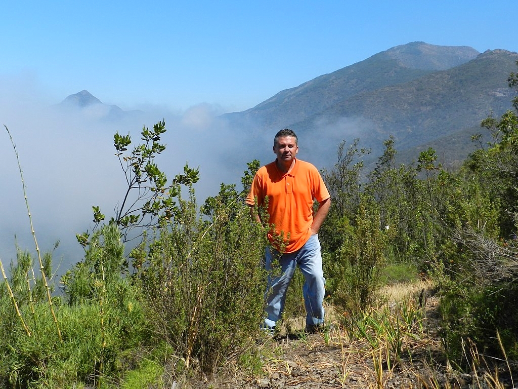 A la distancia se ve cerca, pero hay muchas subidas y bajadas hasta el portezuelo de Lo Miranda que me demoró 5 horas en alcanzar. Seguir siempre la huella junto a la pirca de piedras. Habían muchas mariposas en la cumbre. Atrás, el Morro del Chivato y el Alto del Llivi Llivi.