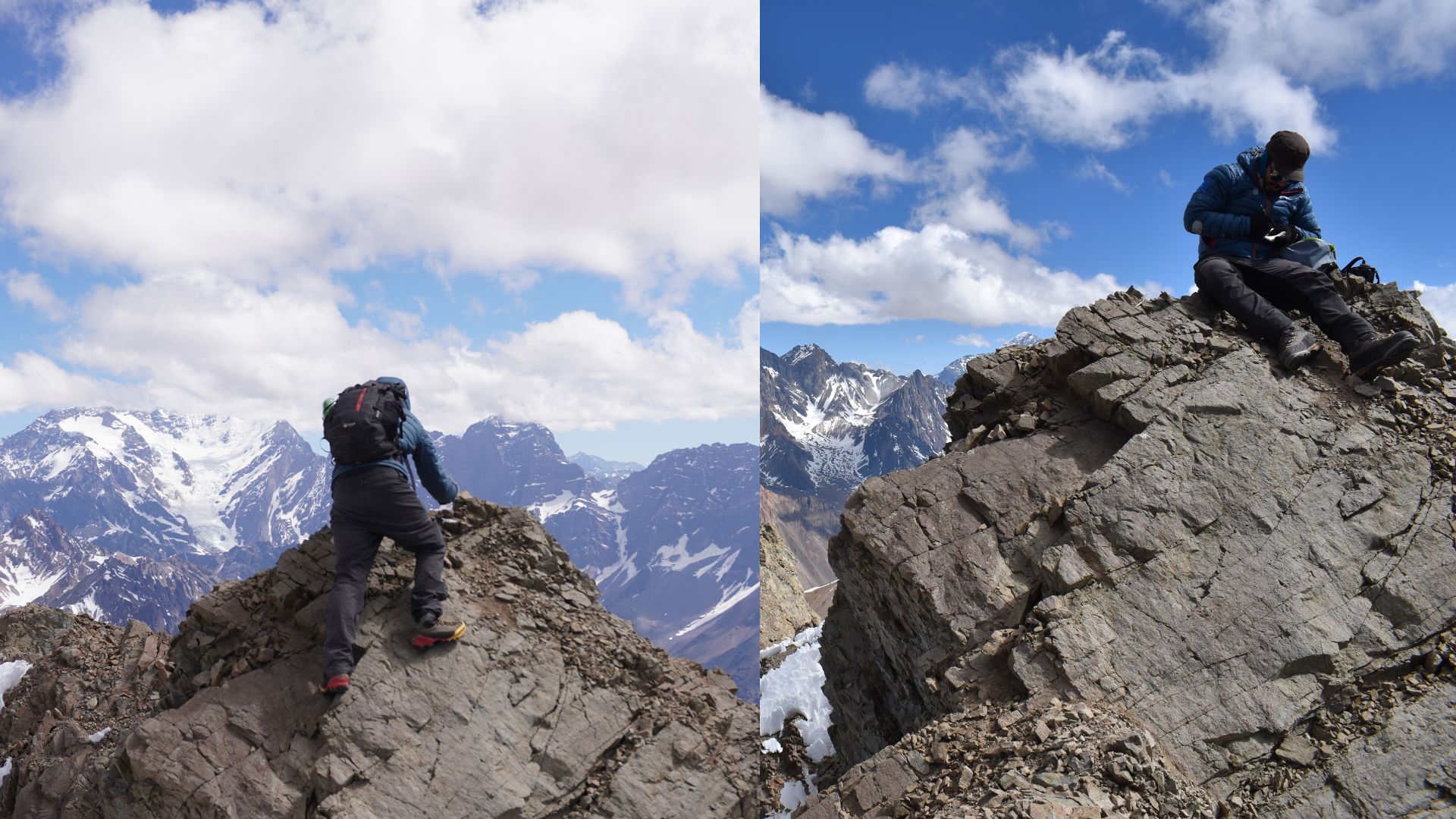 foto cumbrera por turnos Larga jornada de ascenso, desde la casa del gringo,camino al cristo redentor de los andes, en el glaciar de la cara este hay unas lagunillas bien lindas. Parece natural y lógica la ruta realizada desde los 3700 msnm probablemente haya sido la ruta realizada por Marangunic y Gómez durante el primer ascenso. hallamos un testimonio de febrero 2024 desde Argentina.