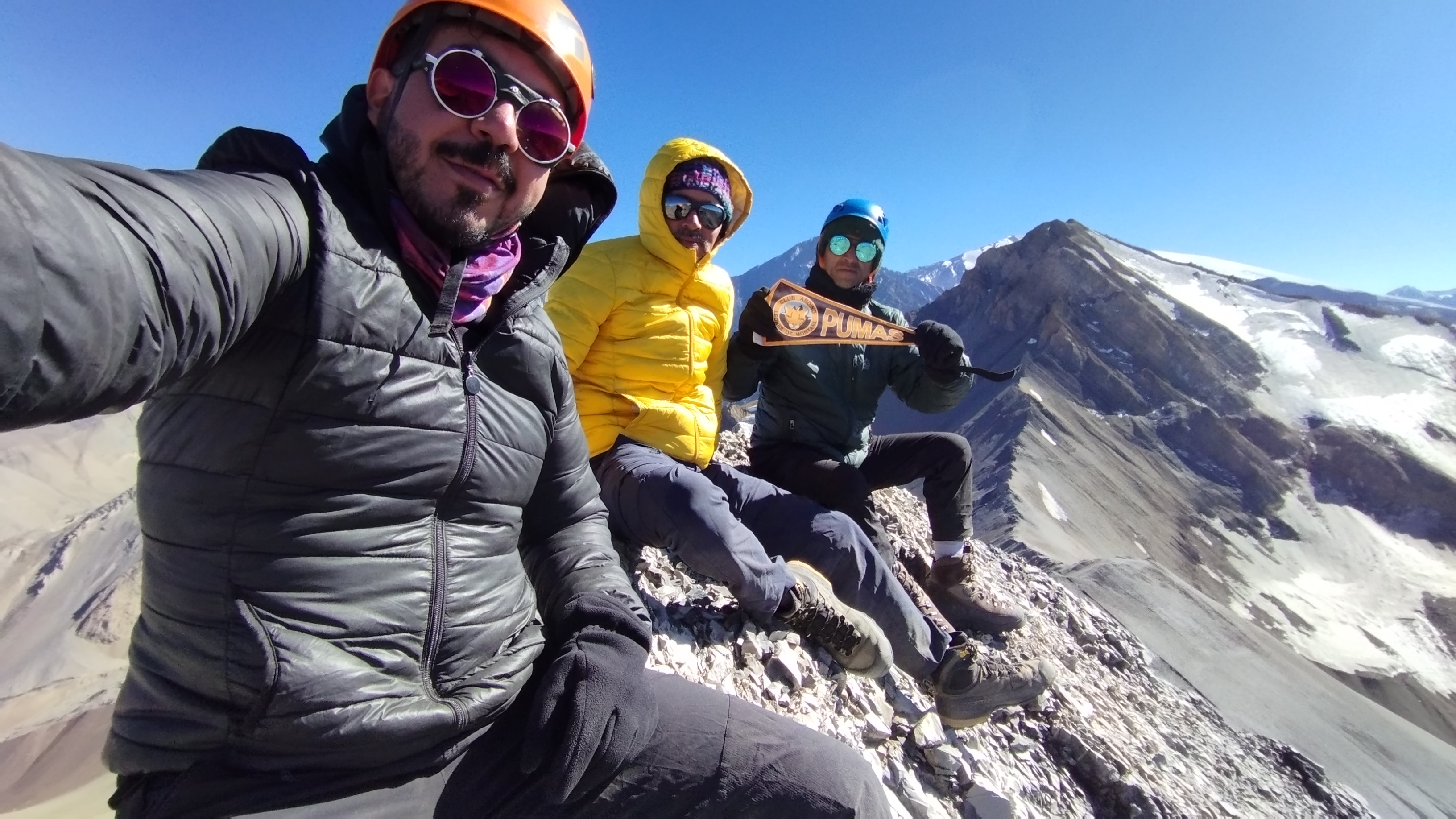 Partimos la madrugada del domingo el ataque desde las termas, si bien es un cerro corto en los números (desnivel y distancia), tardamos 5,5 horas a cumbre, ya que las condiciones del terreno ralentizan la marcha, con bastantes piedras y laderas con acarreos de buena pendiente. Muy bonita y entretenida cumbre con un trepe final. Las vistas maravillosas hacia Chile y Argentina.