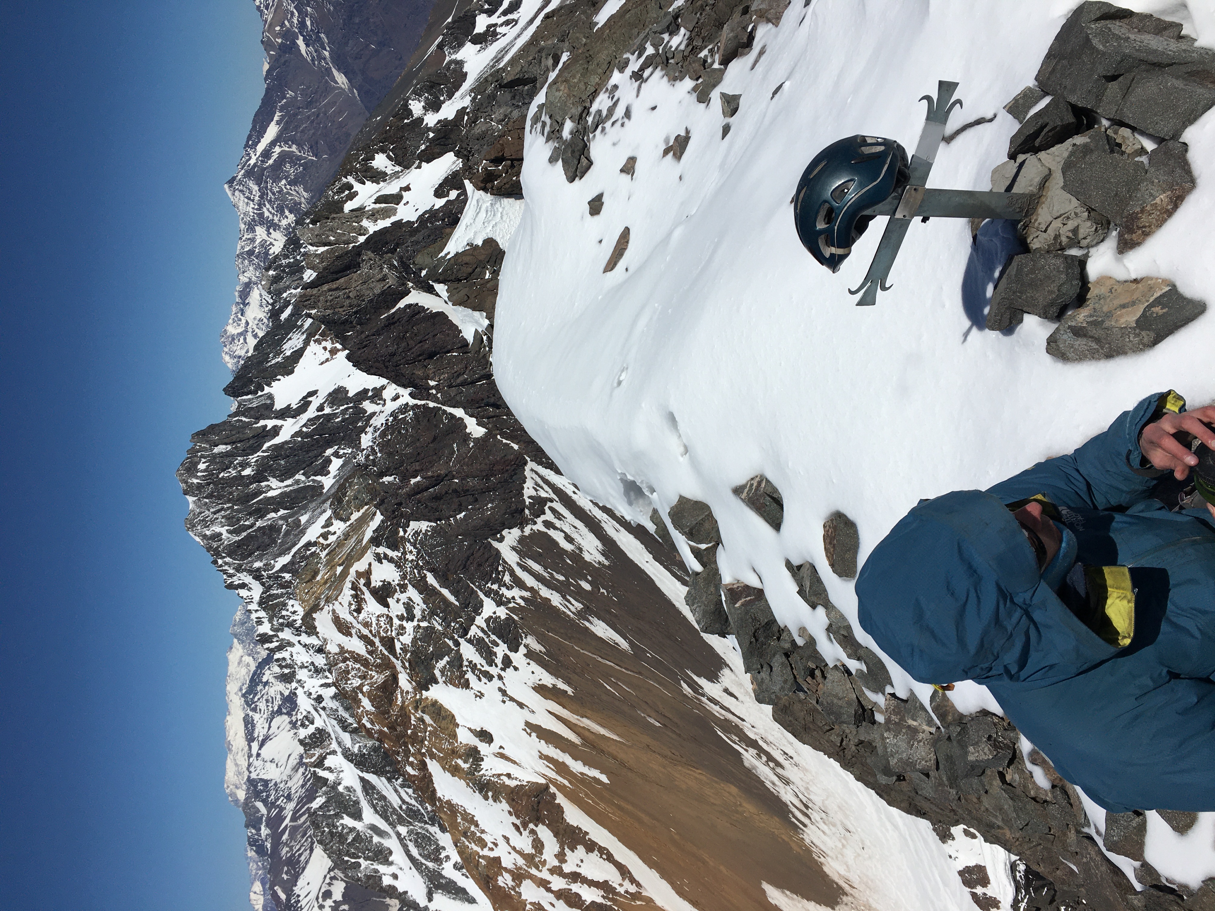 Realizamos la ruta normal. Desde la vertiente de comienzos de la ruta no hay más agua. La ruta tiene huella hasta antes del traverse, luego hay que hacer camino por la falda. En la olla donde se ubica el campamento base había un manchón de nieve. El canalón se constituye a partir de mucho acarreo suelto, en el cual es tedioso ir ascendiendo.