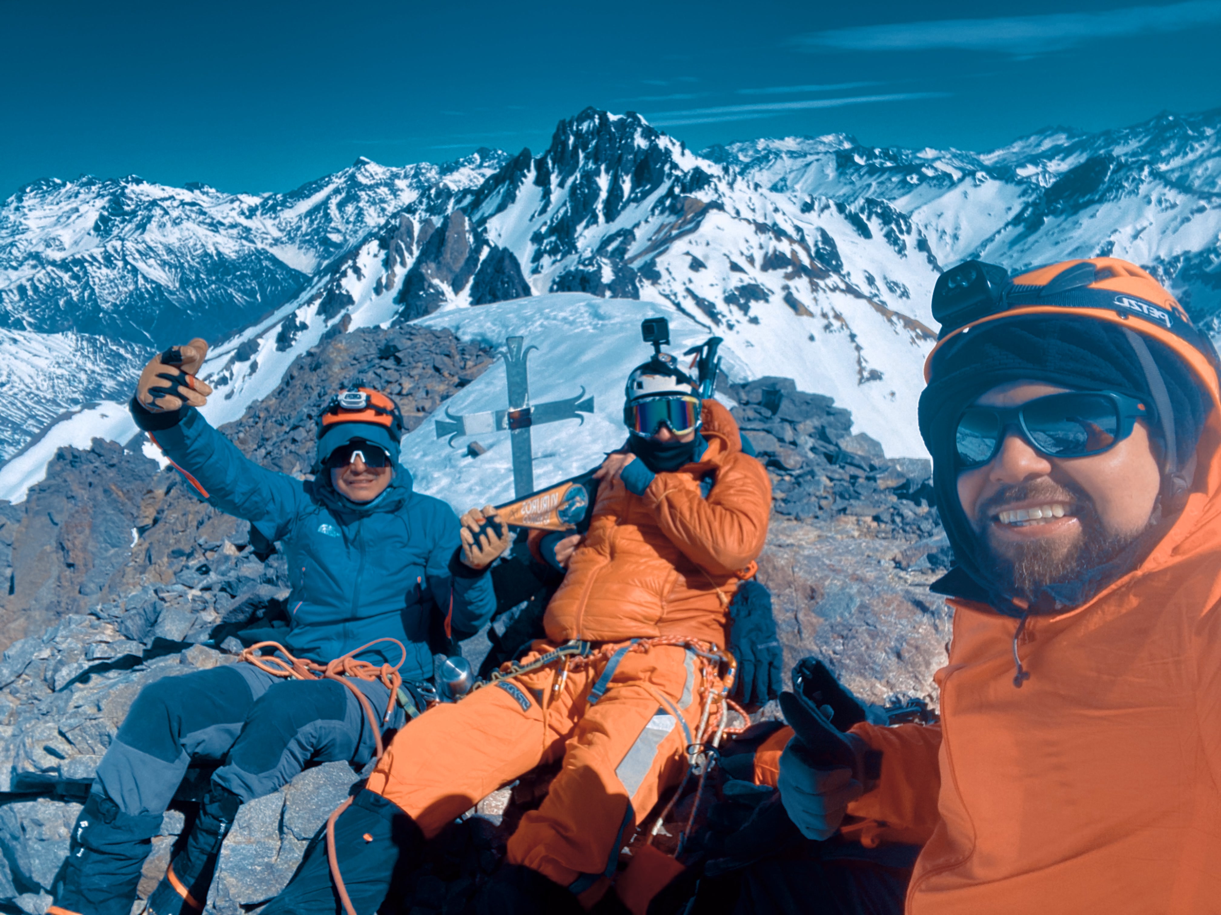Hermosa Ascención, realizamos campamento base intermedio ya que había agüita, realizamos ascenso por la canaleta de los españoles y retornamos al cb por la canaleta de los chilenos. El manto se encontraba en buenas condiciones, se encuentran cintas en bue Hermosa Ascención, realizamos campamento base intermedio ya que había agüita, realizamos ascenso por la canaleta de los españoles y retornamos al cb por la canaleta de los chilenos. El manto se encontraba en buenas condiciones, se encuentran cintas en buenas condiciones y dos stopper para salir de la canaleta por el costado izquierdo escalando unos 4 metros hasta la cinta. Luego el ascenso de Torreón estaba con bastante viento y en unos 15 minutos de trabajo nos encontrábamos en la cumbre. Para retornar se remonta unos tramos de rocas hasta llegar a un cordin que lleva hasta la parte trasera de la cornisa y luego de unos 10 minutos y des-escalar un nevero llegamos al descuelgue de la canaleta de los chilenos donde igualmente había cordín que realizamos cambio.