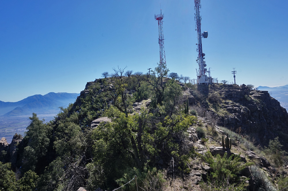Pensábamos que iba a ser un ascenso fácil, pero por el filo se complicó. Entre chaguales, cactus, rocas no fue fácil el avance y al final hubo que rodear el morro de la cumbre para poder subir la última parte. Increíbles las vistas a la cordillera de la Costa, valle Central, tranques de relave y cordillera de los Andes.