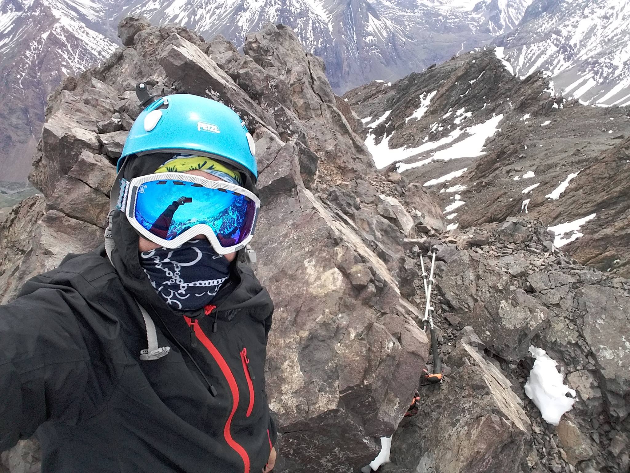 hermosa vista a lo valdes Un cerrazo,concentración máxima en el filo, pisando cornisas,trepes y destrepes, sin crampones ni piolet por nieve dura.
