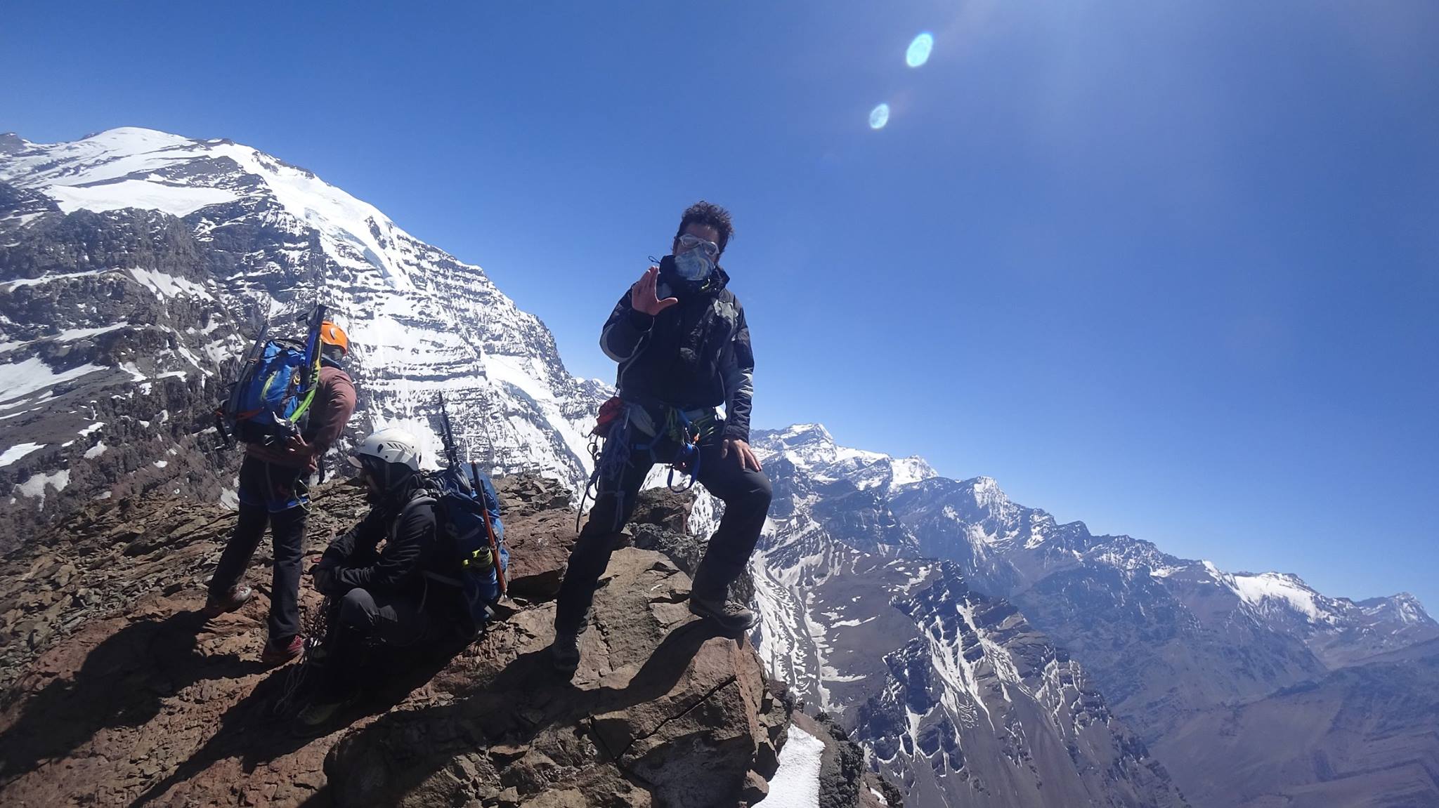 Buen clima, despejado en general y con temperaturas agradables, algo de neblina durante la tarde. La ruta casi sin nieve, roca de mala calidad. Una vez en el filo, algunos cordines que habían y otros que dejamos sirven de guia para saber donde montar los rapeles. (se nos quedaron dos pares de bastones en el filo, recompensa al que los baje y nos avise).