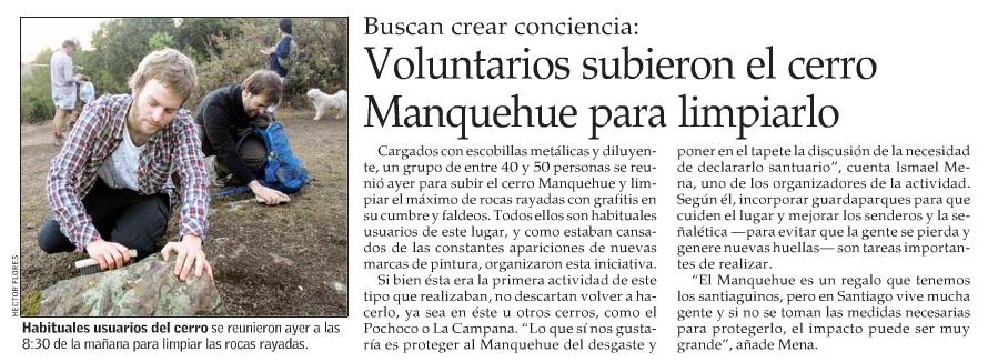 El cerro presentaba un centenar de rayados hechos con spray. Se pudo borrar cerca de 80 de éstos.