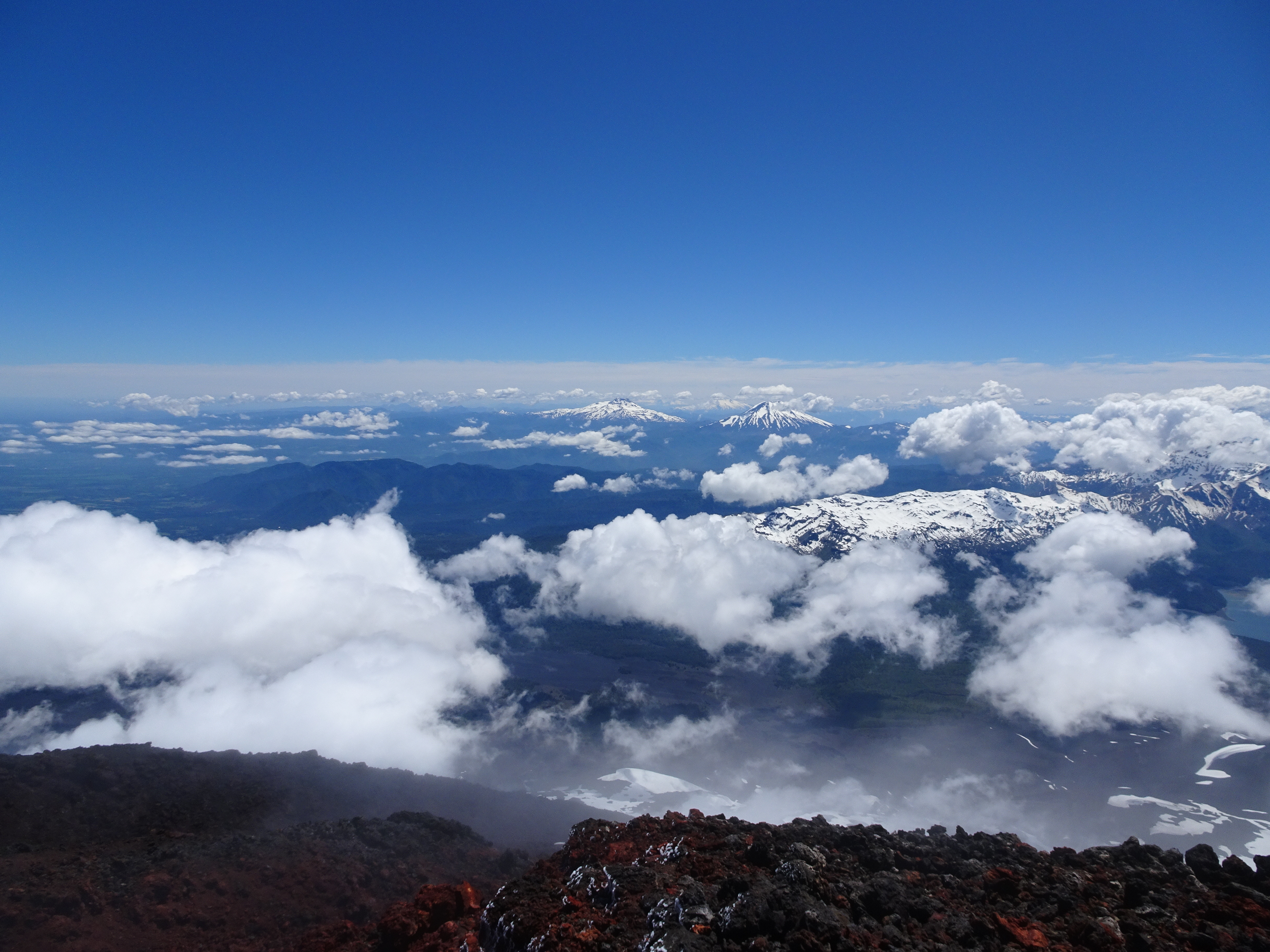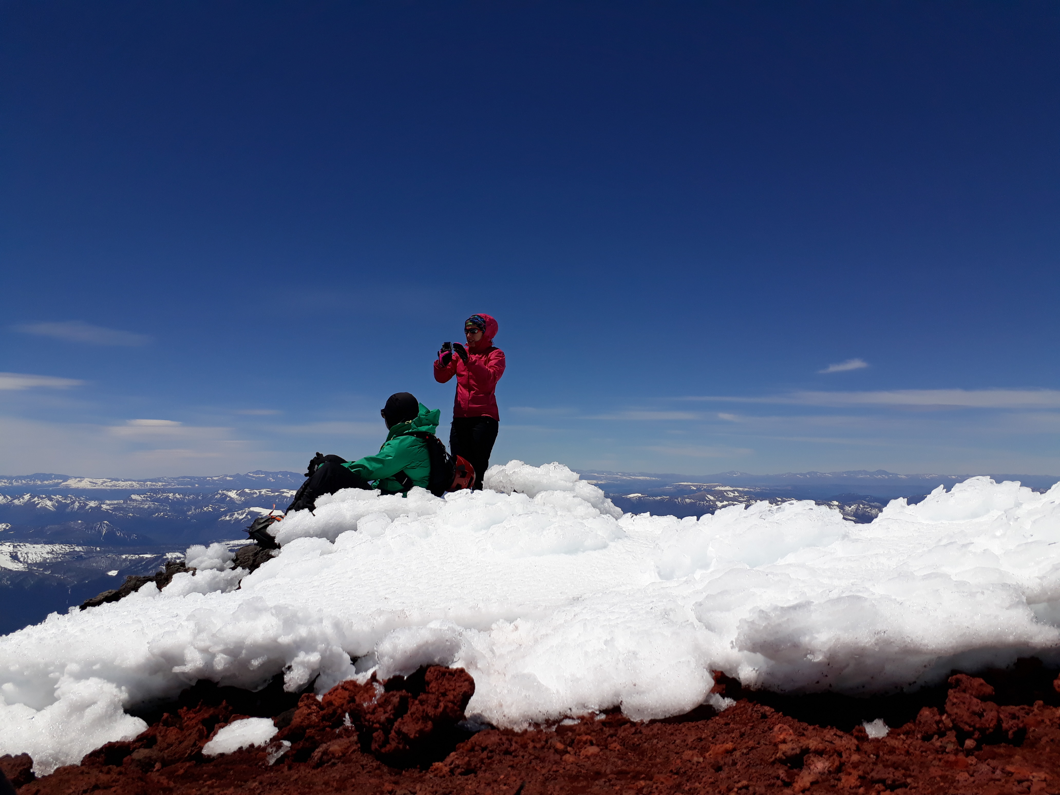 Comenzamos desde el centro de ski a las 4:30 am. Ascenso hasta el plateau sin nieve, casi llegando a este punto aparece la primera plancha de nieve muy dura, lo que obliga al uso de crampones que usamos hasta la cumbre. Nieve dura en el plateau que permitió el avance rápido hasta el cono, desde acá seguimos a menor ritmo por el desnivel pero constante y con buen agarre. En el comienzo de zona de fumarolas se apreciaron múltiples deshielos generando cuevas poco profundas que se pueden sortean con cuidado por puentes de nieve. Tras este punto y a 300 metros de la cumbre comienzan planchones de nieve y acarreos. La mayoría de los acarreos resultaron de muy difícil ascenso, recomendamos subir en la medida de lo posible por los planchones de nieve, muy cerca de la cumbre no queda opción más que avanzar por acarreos, fijarse bien porque hay pequeñas marcas de senderos zigzagueantes que alivian bastante el ascenso. Tras 6:30 hrs logramos hacer cumbre, día completo despejado y ascenso prácticamente sin viento( leve en la cumbre). Ese día logró cumbre otro montañista en solitario. Otra cordada de 2 que venía a muy buen ritmo llegó hasta la zona de cuevas, si bien no apreciamos lo que sucedió, suponemos que tuvieron alguna dificultad en este sector y luego descendieron sin problemas, recomendamos en la medida que indique si criterio algún sistema de anclaje como estaca de nieve y quizás alguna cuerda o cordin para salir de las cuevas sin dificultad. El descenso por los acarreos fue muy amigable, la nieve más blanda pero sin dificultad. Dejamos el contacto del único camping que encontramos con disponibilidad en esta en fecha en Cherquenco: +56992139807 Doña Irene y Don Cesar, muy amables y el camping muy lindo.