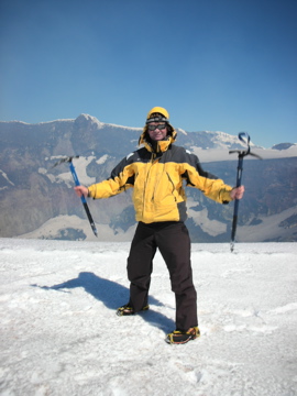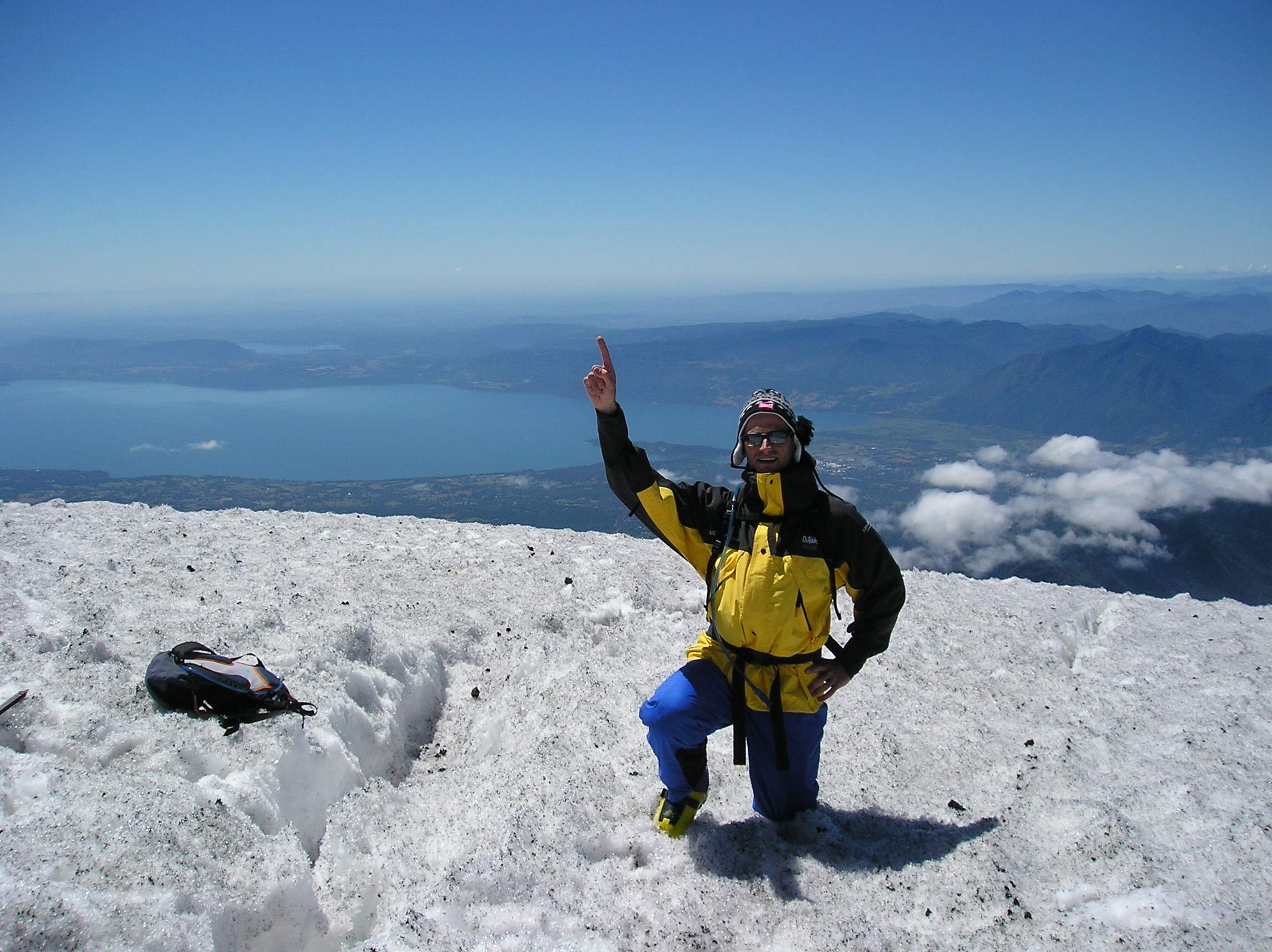dangerous cornice of snow and ice around the crater rim