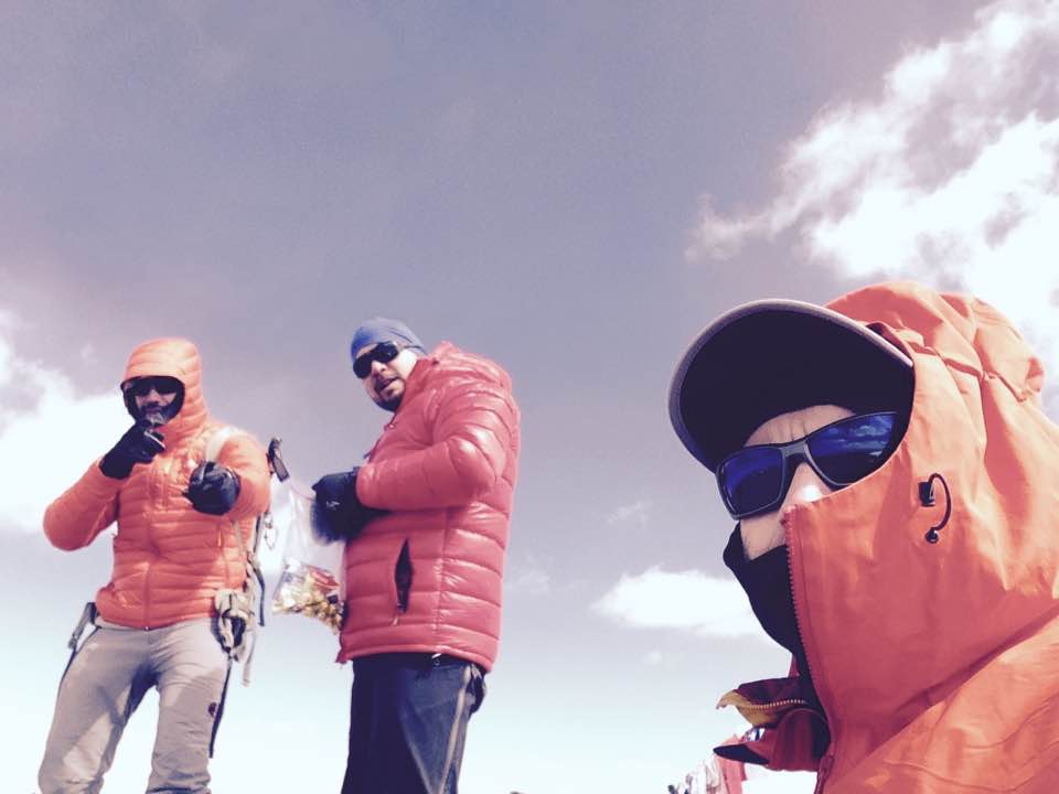 Glaciar muy expuesto al viento..hielo vidrio. .exigencia de buenos crampones hieleros y ropa de abrigo liviana ..se nos tapó subiendo ya casi a cumbre , viento blanco y nieve ..temperatura en cumbre -19 según termómetro ambiental