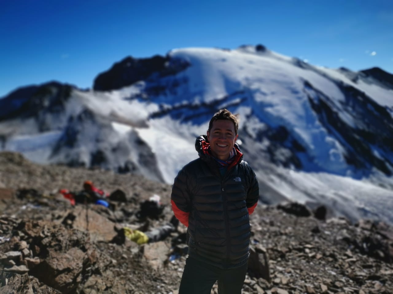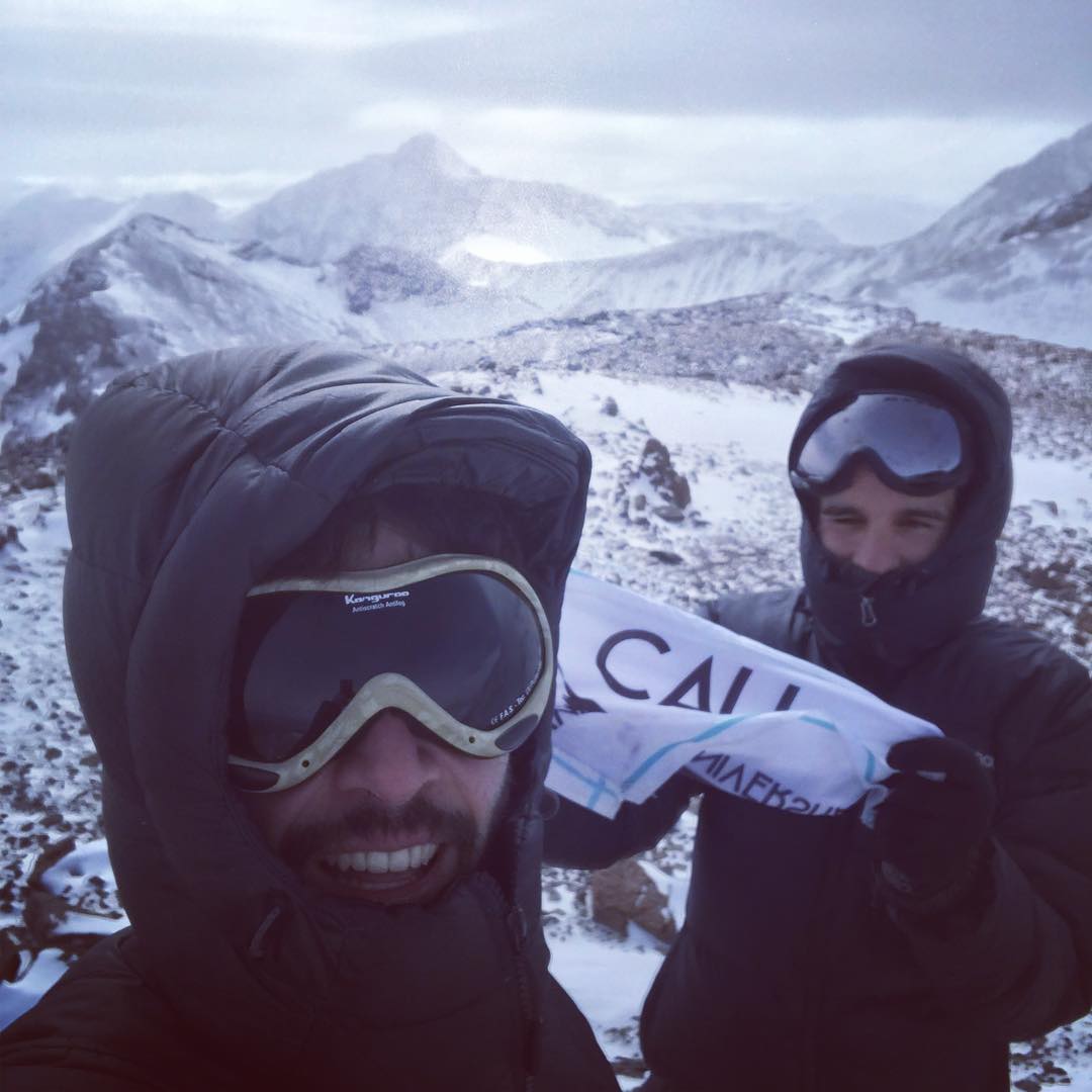 Muchas expediciones arman campamento sobre el plano de Cancha de Carreras. En la foto, una expedición que visitó el cerro en noviembre después de una nevada.