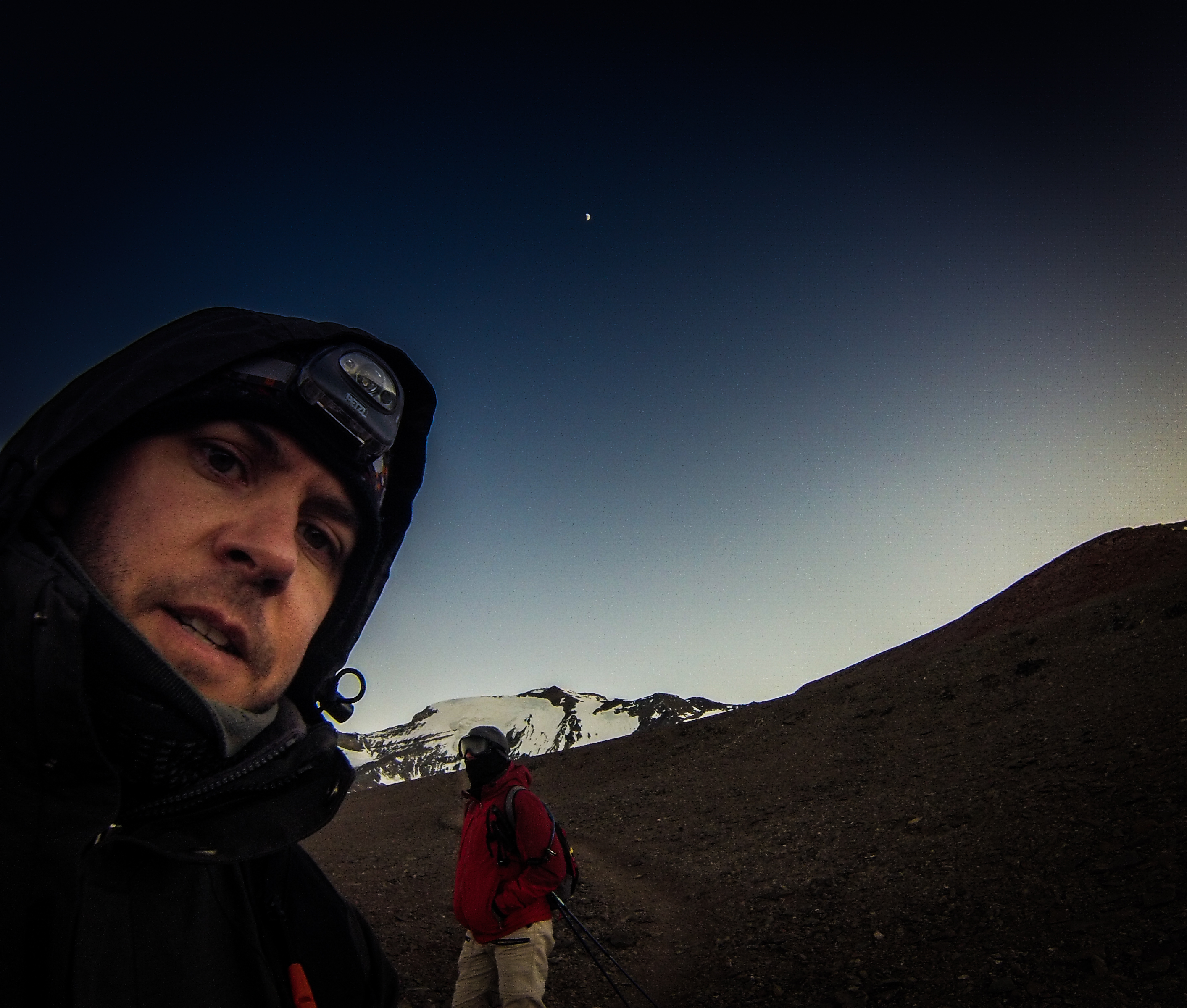 salimos a las 5:30 e hicimos cumbre a las 11:00; esto con harta calma y bastantes detenciones (necesarias por lo demás). El retorno fue en dos horas hasta cancha de carreras, y de ahí en 1,5 hasta los andariveles (con esfuerzo extra para alcanzar antes que los cerraran)