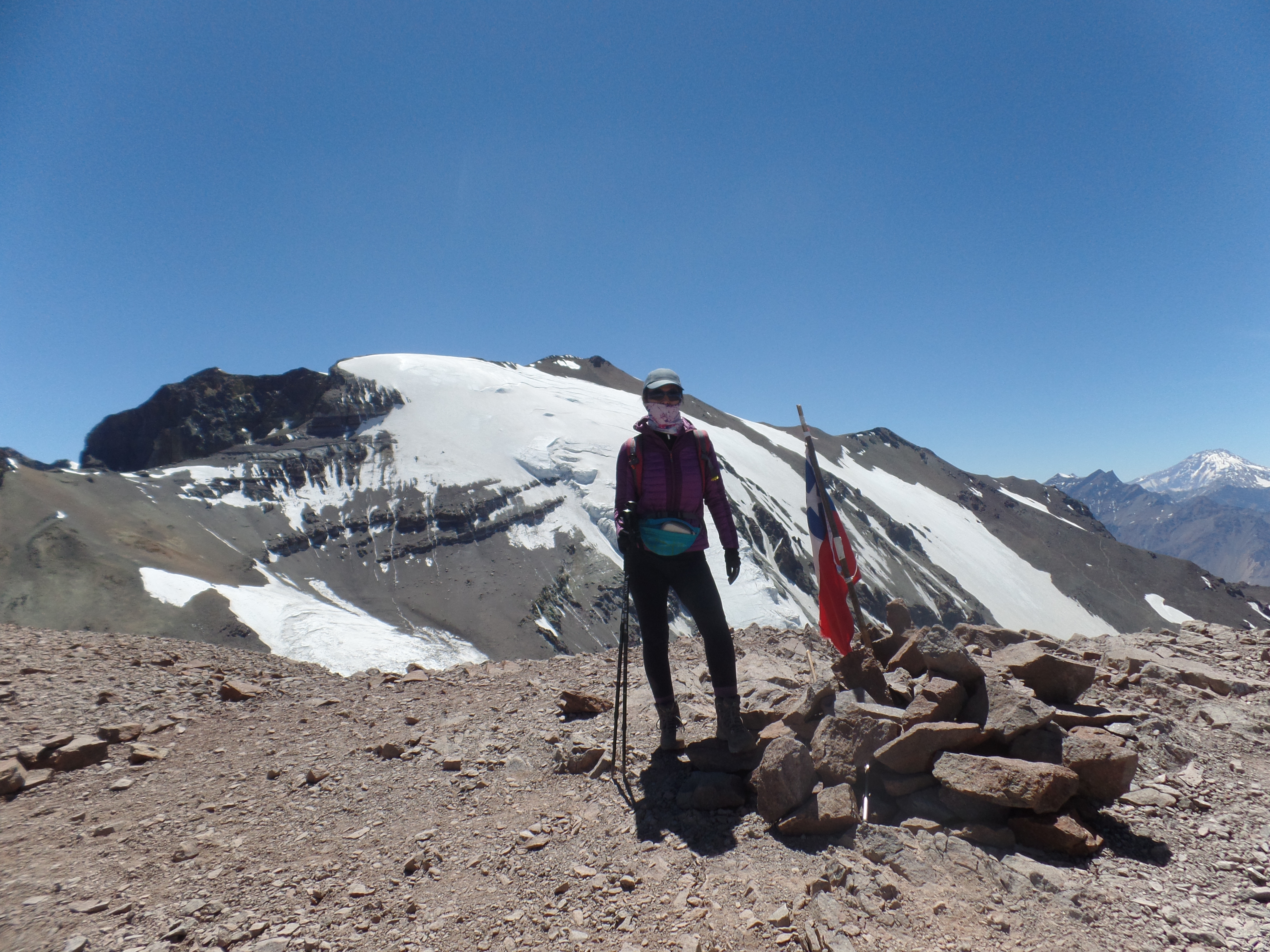 Habiendo dormido en Federación, hice el Leonera desde allí llegando a cumbre en 1h18. Seguidamente coroné Punta Hermandad pero fracasé en enlazar con Punta Santiago, tuve que volver a Federación por la vaguada que queda entre el Leonera y Punta Santiago/Glaciar Colgante de El Plomo.