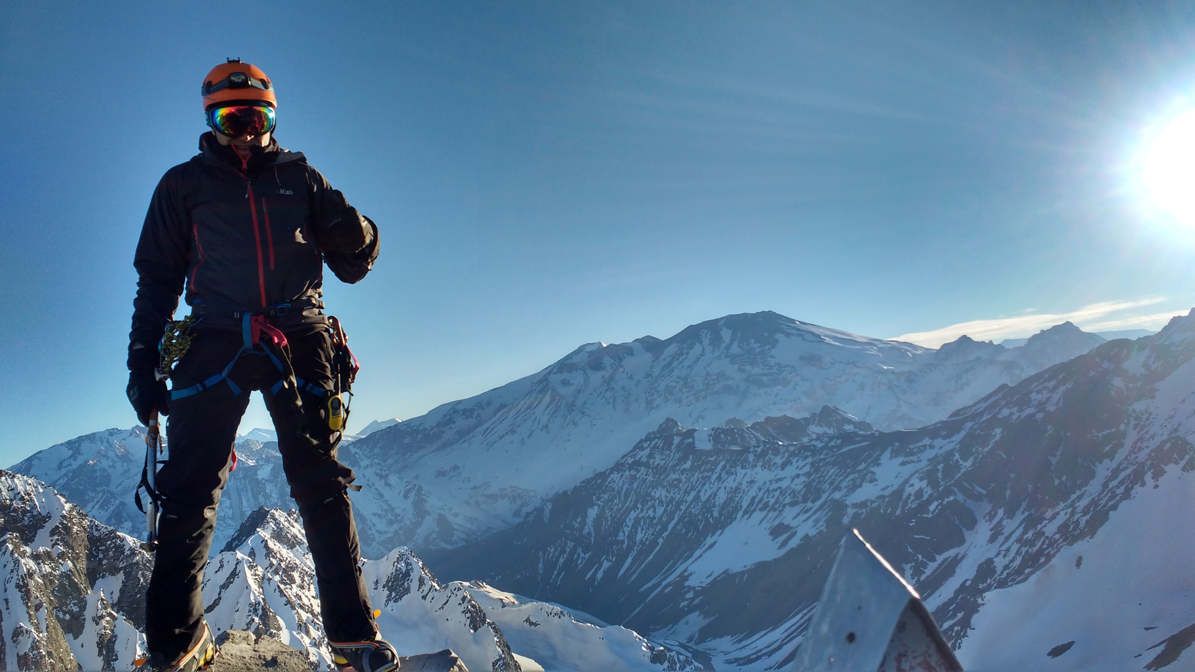 Le dimos medio a medio a la ventana del día domingo 14 de octubre, empezamos la escalada bien temprano para encontrarnos con nieve bastante dura. tipo 7:30 am llegamos al portezuelo sur para descansar un poco, disfrutar de la vista y luego realizar el traverse. luegonos fui la sombra de la segunda canaleta y para terminar realizamos una pequeña escalada por un filo bien expuesto asegurando con pequeños números, muy felices de haber podido hacer la ruta sin problema.