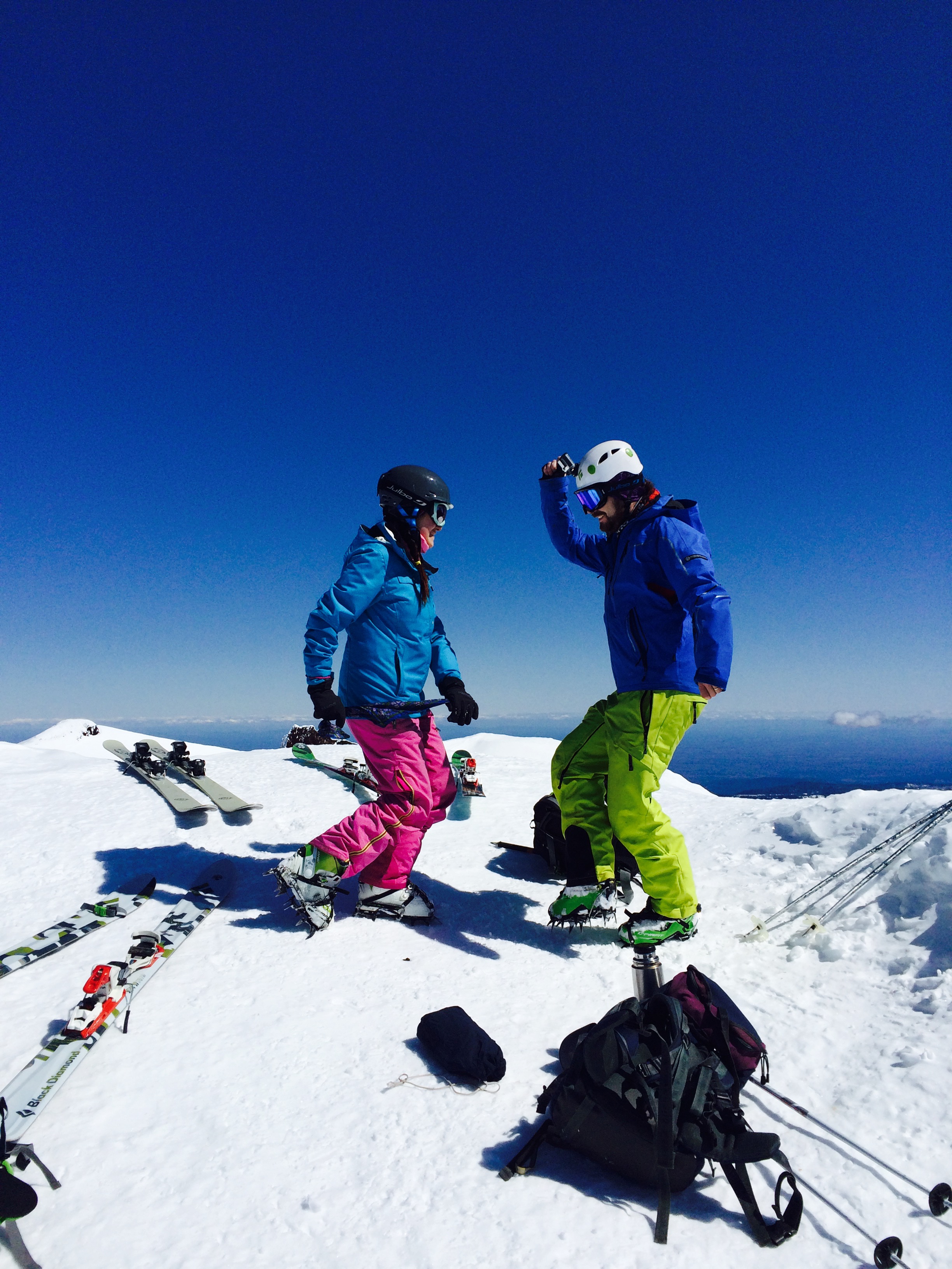 Día soleado pero harta nieve, no alcanzó a ponerse blanda. Subimos por los andariveles hacia arriba. En cumbre había harto viento, empujaba un poco.