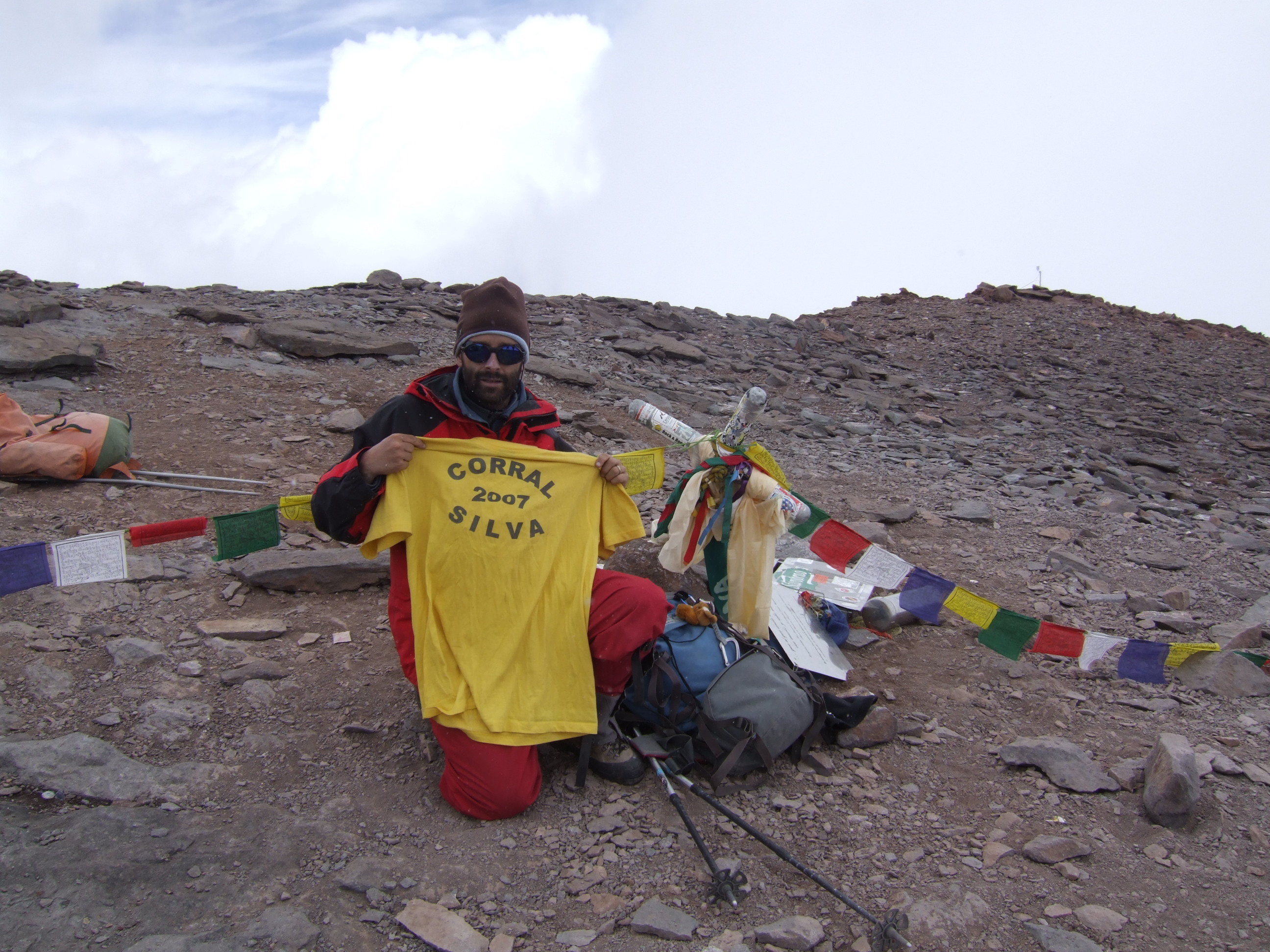 Unas 8 horas de ataque desde el campamento Cólera, partimos 5:30 AM. Bastante viento y nieve con un día despejado.