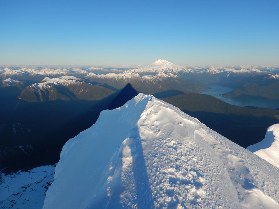 Despejado entre 1 am y 3pm. Casi nada de viento. Aproximación con nieve bastante blanda hasta el filo. Camp-pie de vía: 6 hrs Pie de vía-cumbre: 4 hrs Cumbre-pie de vía: 3 hrs 16 hrs total hasta el camp en el río previo al domo. Primeras palas de la variante norte bastante congeladas, las sgtes con nieve blanda al igual que el largo 6. Traverse con algo de roca descubierta en secciones aéreas. Largo 8 más vertical que de costumbre en ésta época por la poca nieve que ha caído este año. Bastante caída de material a las 12pm.