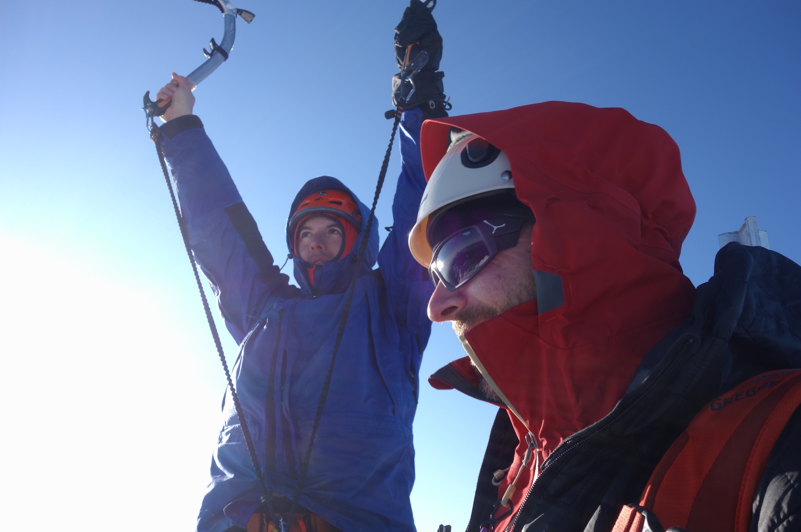 Despejado entre 1 am y 3pm. Casi nada de viento. Aproximación con nieve bastante blanda hasta el filo. Camp-pie de vía: 6 hrs Pie de vía-cumbre: 4 hrs Cumbre-pie de vía: 3 hrs 16 hrs total hasta el camp en el río previo al domo. Primeras palas de la variante norte bastante congeladas, las sgtes con nieve blanda al igual que el largo 6. Traverse con algo de roca descubierta en secciones aéreas. Largo 8 más vertical que de costumbre en ésta época por la poca nieve que ha caído este año. Bastante caída de material a las 12pm.
