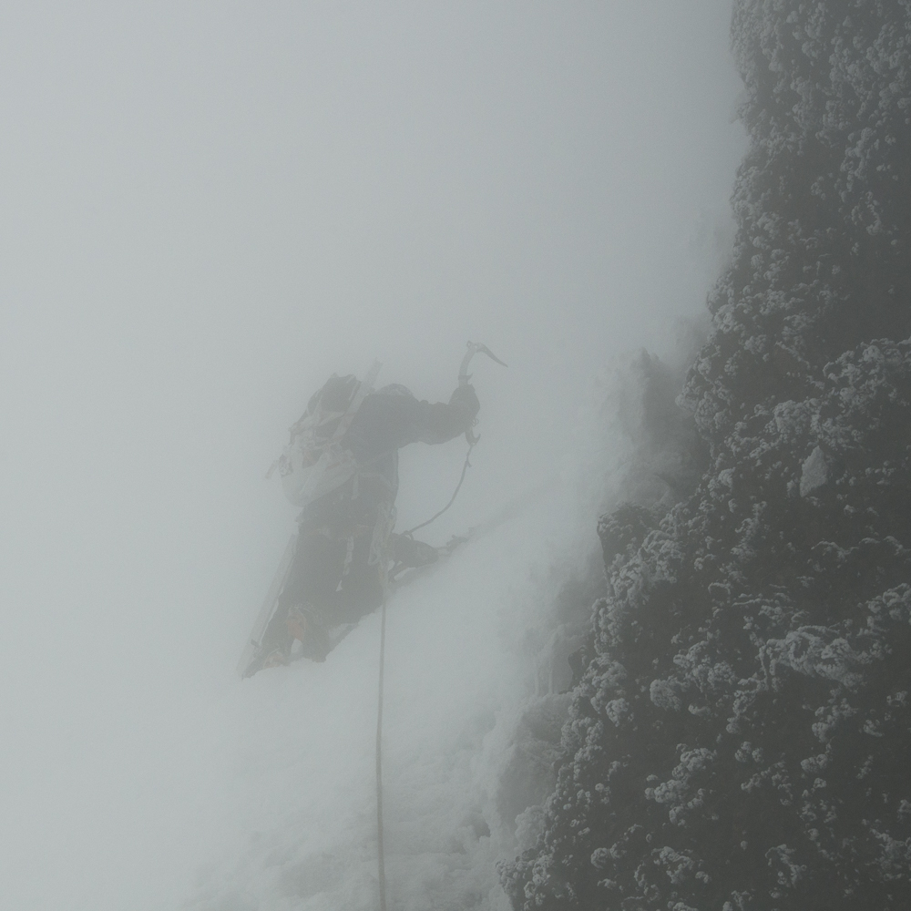 El pronóstico del tiempo auguraba una ventana de tres días perfectos, pero lamentablemente nos falló el segundo, día planificado para intentar la cumbre. Partimos del CB a las 2am con neblina, esperando que fueran nubes bajas o bien las nubes se disiparan a media mañana como sucede a veces en la zona. Pero nuestra esperanza no se hizo realidad hasta después de las 5.00pm. Alcanzamos a llegar a 150m de la cumbre (inicio del 4to largo de la descripción) con visibilidad de 5-10m, pero el viento helado y humedo nos trató con inclemencia, por lo que decidimos dejar el intento hasta ahí antes que mimetizarnos con los coliflores de hielo. Buenas condiciones de nieve para las estacas, aunque habriamos preferido un par de tornillos para la zona de la pared de hielo vertical. Lo pasamos increible, pero quedamos muy picados, volveremos! (Cordada: Jose Miguel Calvo, Anton Felmer y Marcelo Camus; Puerto Varas).