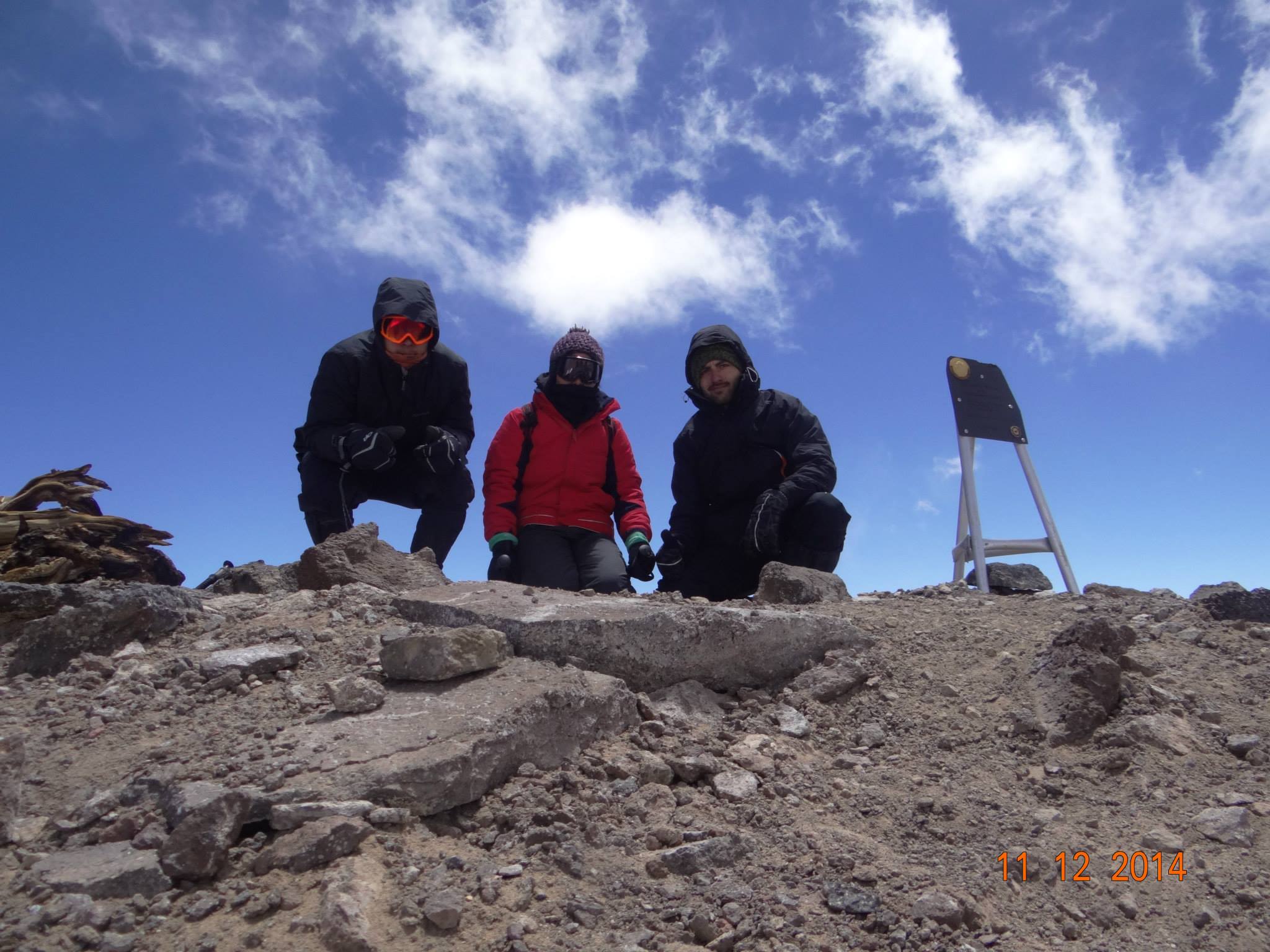 El día 8 de diciembre llegamos al CB y nevó durante casi toda la noche. Toda la ruta de ascenso al refugio tenía nieve, pero muy blanda, por lo que no se requirieron crampones. El sendero está muy bien marcado. El refugio estaba lleno, por lo que sugiero subir con carpa (a nosotros nos prestaron una). El día de cumbre salimos 10 personas, en 3 cordadas. Fue agotador, ya que la nieve convirtió en barro el acarreo final y se requiere buen estado físico para completarlo. Pese a la nieve, no se necesitaban crampones. Nos demoramos unas 8 horas en hacer cumbre.