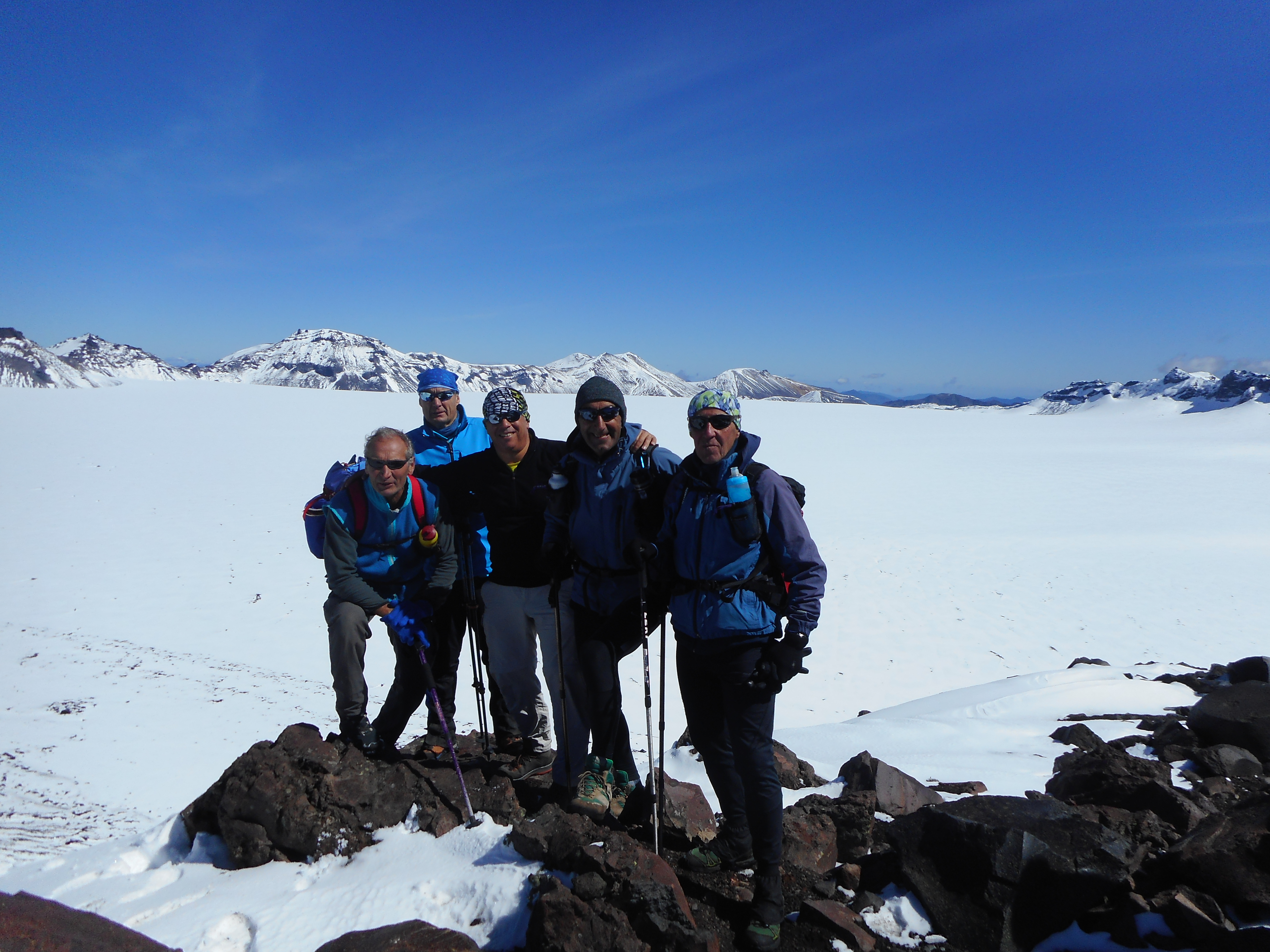 Día nublado y frío. Harta nieve, estaba para subir con raquetas, de lo contrario de hundías. Un poquito de hielo llegando al cráter.