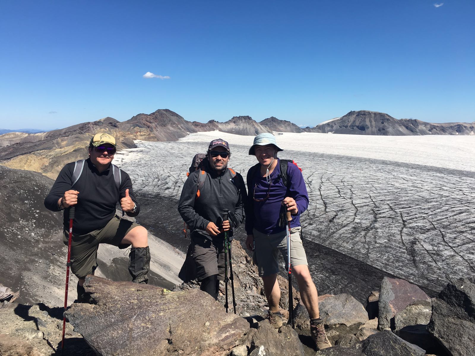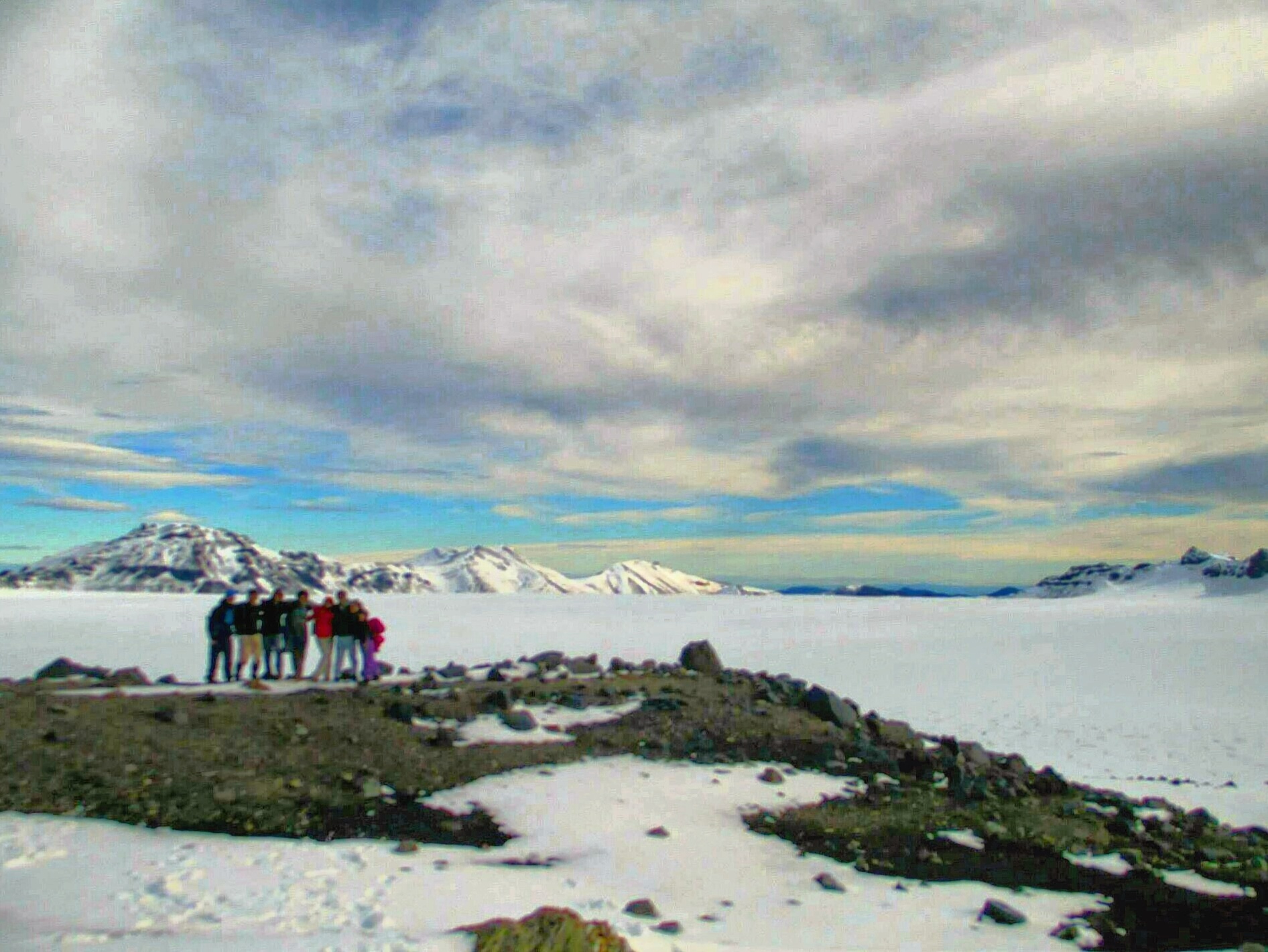 Día nublado y frío. Harta nieve, estaba para subir con raquetas, de lo contrario de hundías. Un poquito de hielo llegando al cráter.