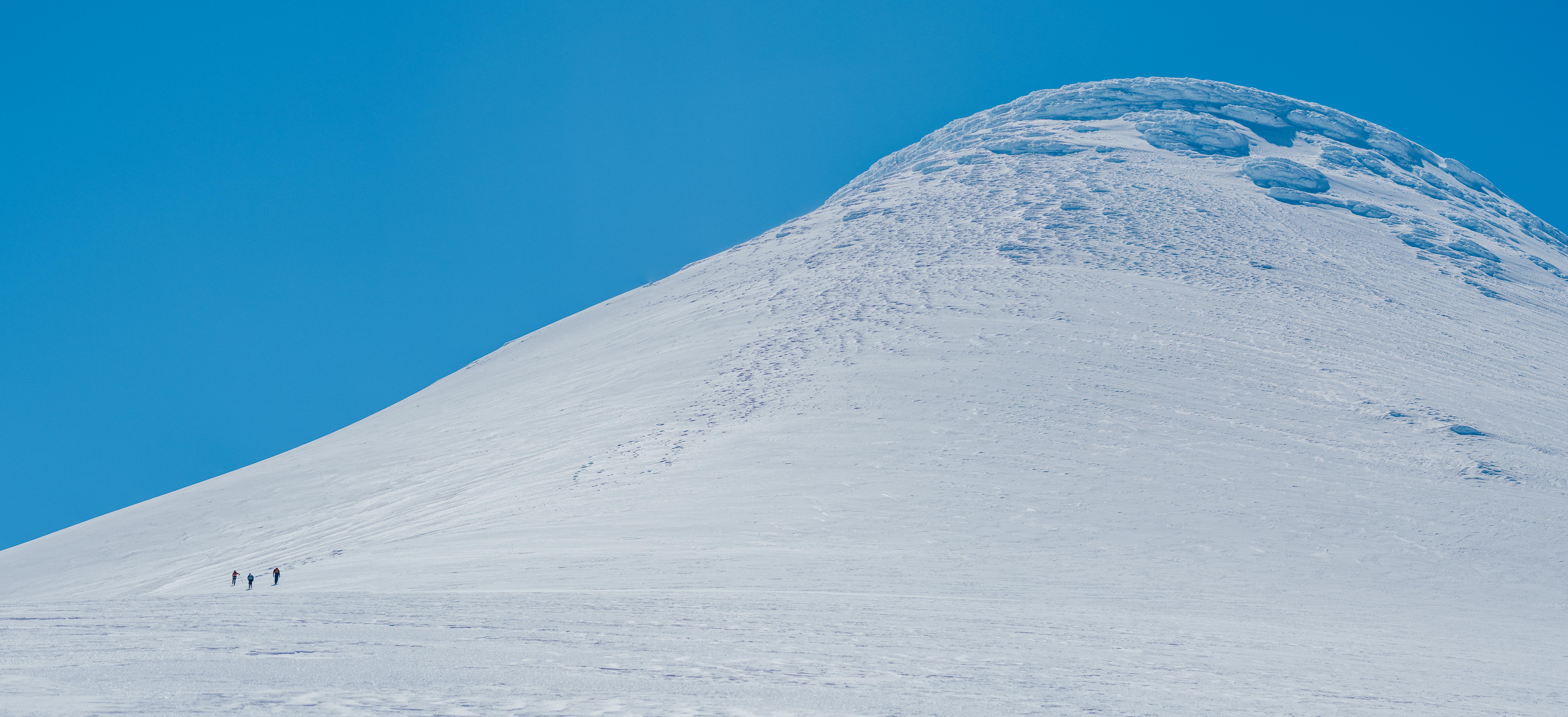 Acercándose a la cumbre, dejando el plano, y adentrándose a las pendientes más empinadas y ahieladas.