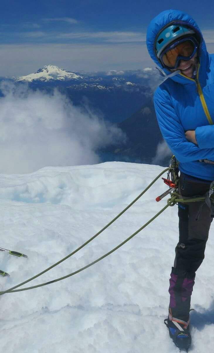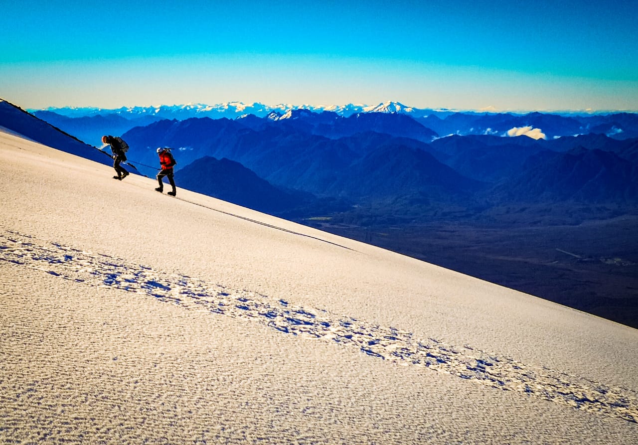 Partimos a las 8.00 de la mañana, fuimos a un ritmo rápido, alpino. Es posible hacerlo en 3 hrs a un ritmo acelerado, nosotros lo alcanzamos en 3.40 hrs. Si tiene la experiencia suficiente de escalada tradicional es posible hacerlo sin cuerda, siempre y cuando el clima y la nieve estén en óptimas condiciones. Preciosa vista, se pueden apreciar muchos volcanes.